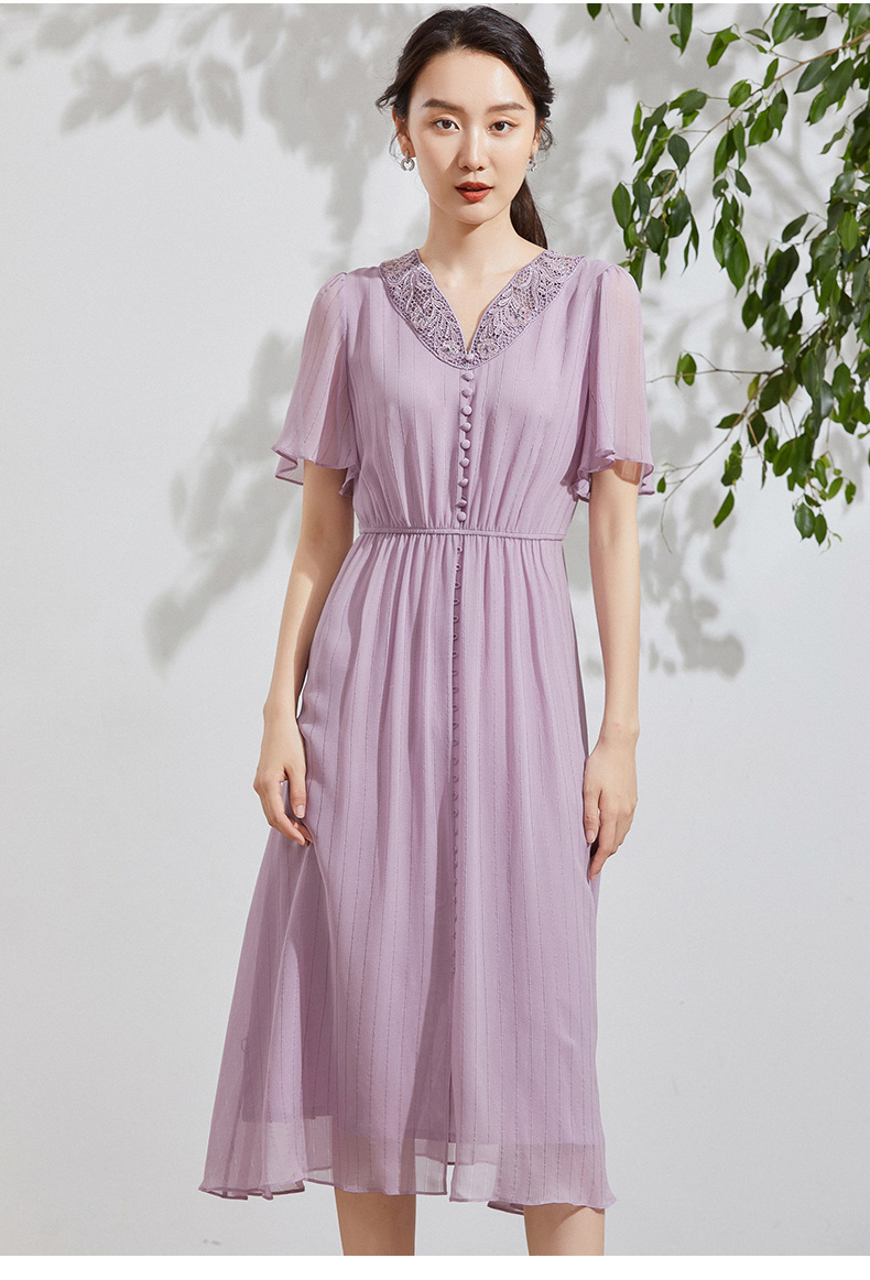 乔万尼真丝连衣裙女气质显瘦新款紫色桑蚕丝长裙EF2E409