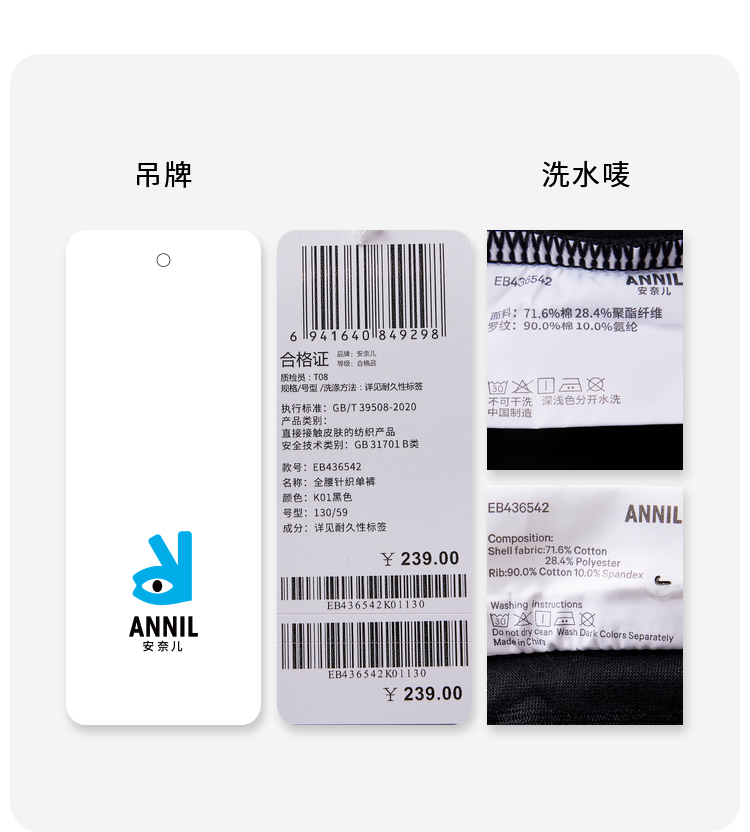 男童全腰针织单裤秋季新款安奈儿童装EB436542