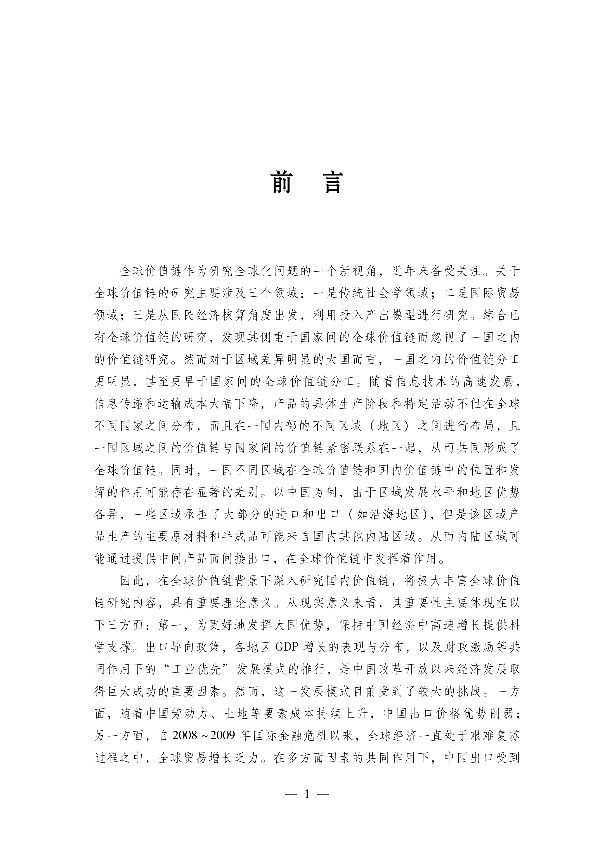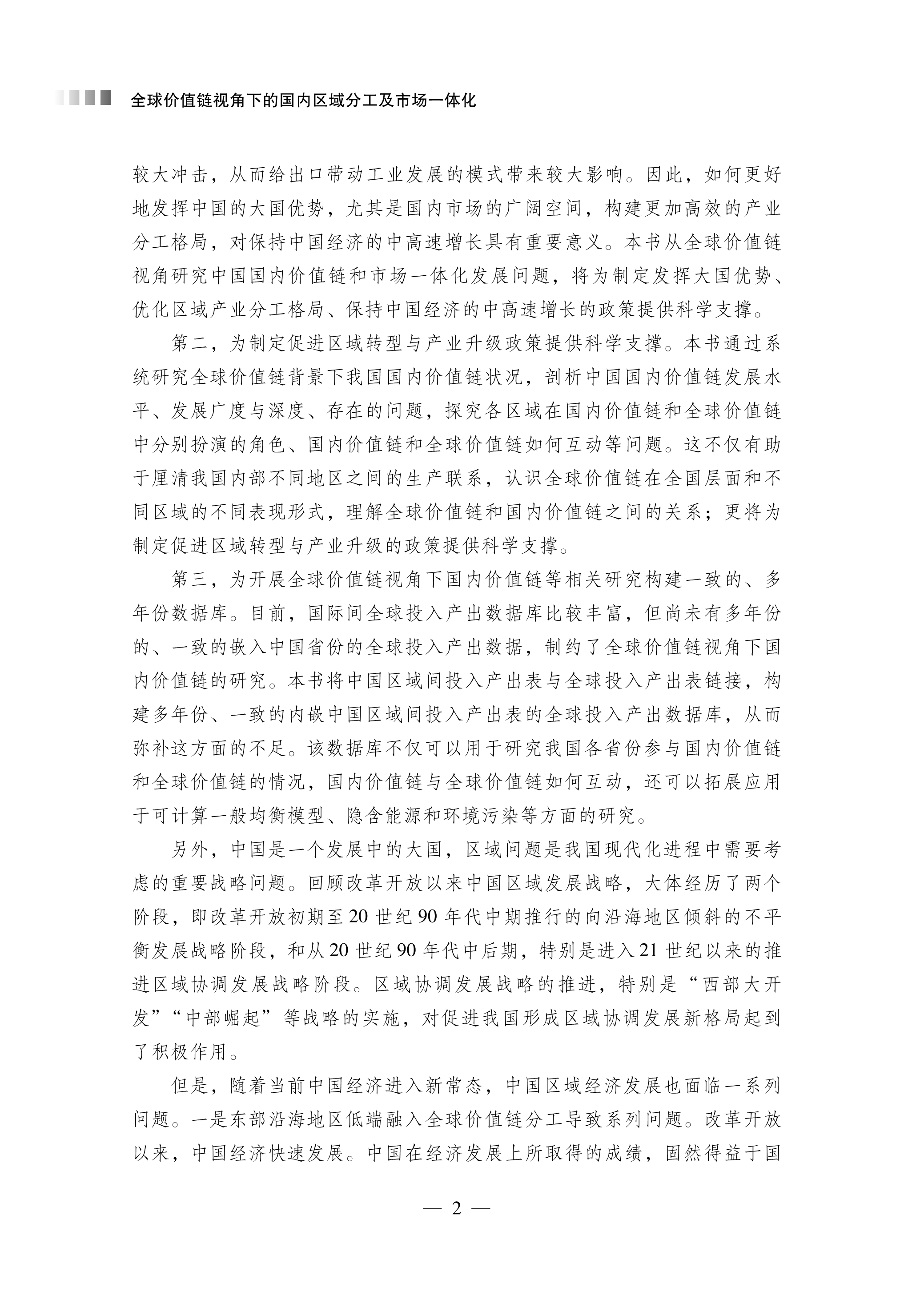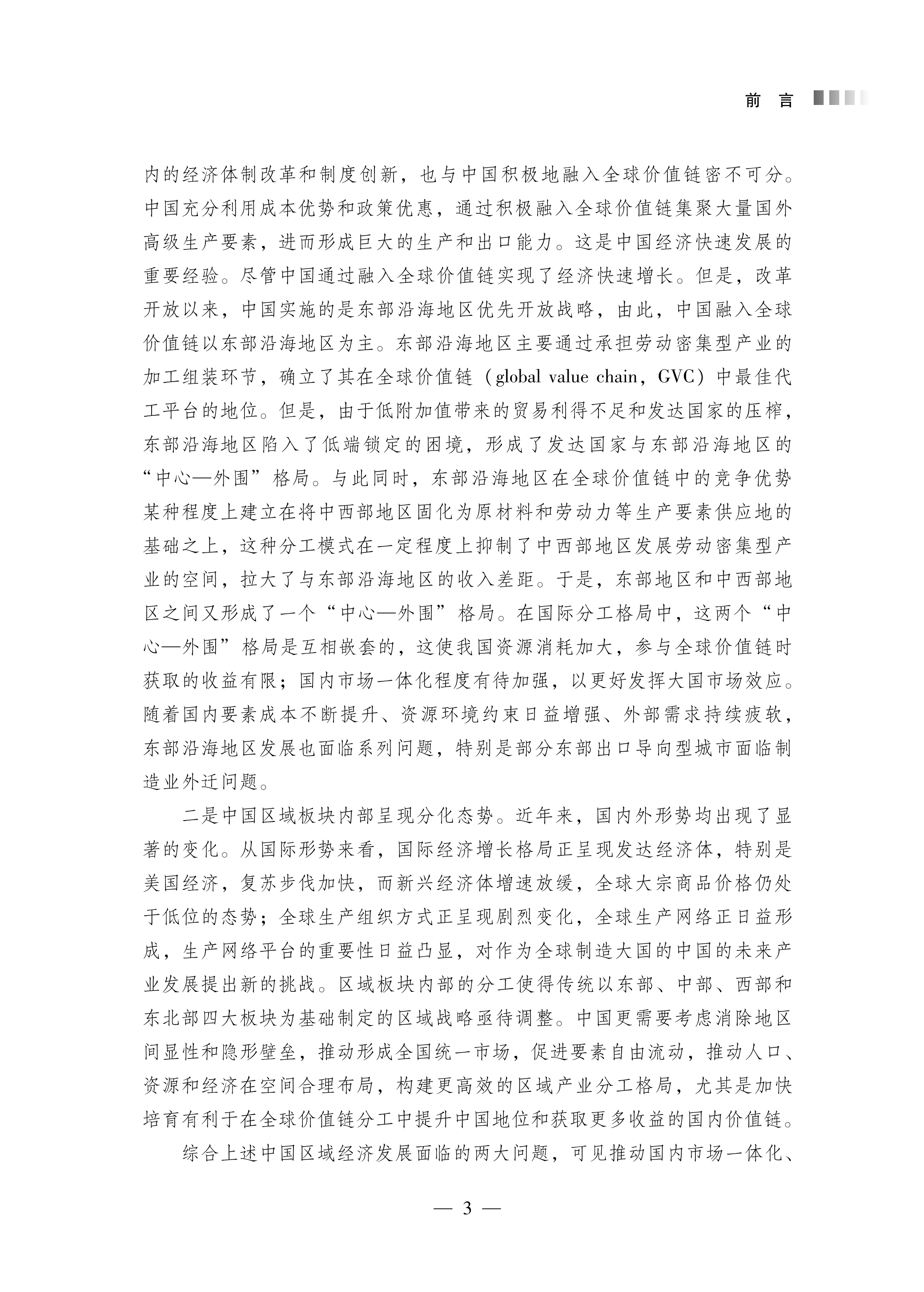全球价值链视角下的国内区域分工及市场一体化
