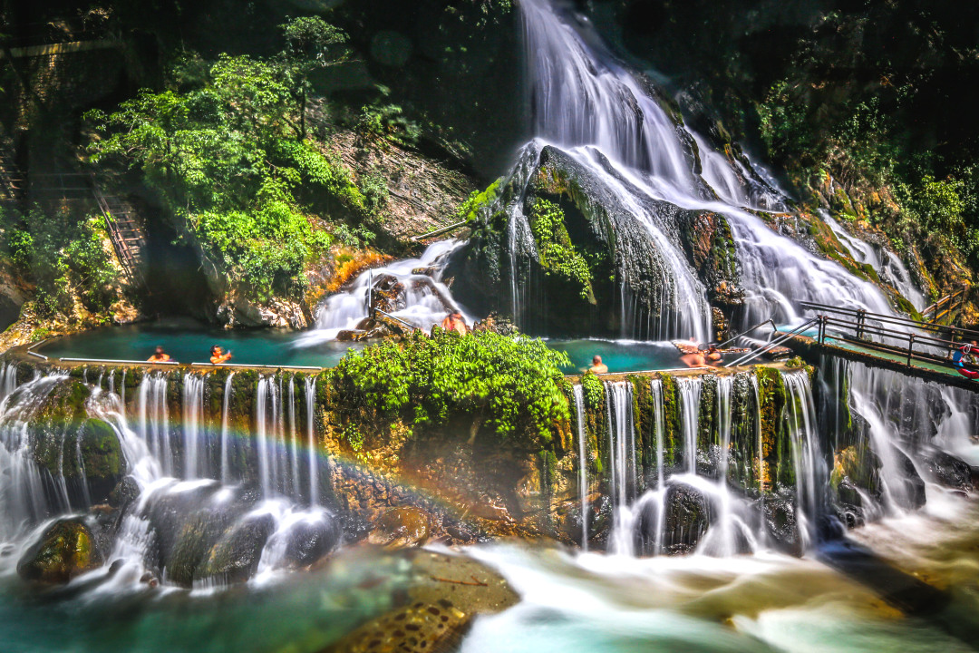 随后乘车前往【螺髻99里温泉瀑布】,这里是世界最大的温泉瀑布群,也是央视认证的“中国最美温泉”。数十个天然泉眼从悬崖峭壁上飞流而下,形成宽达200多米的瀑布群。换上泳衣,直接在瀑布下冲洗,又或者在观景台上可以拍到壮观的瀑布全景,烟雾缭绕宛如仙境。