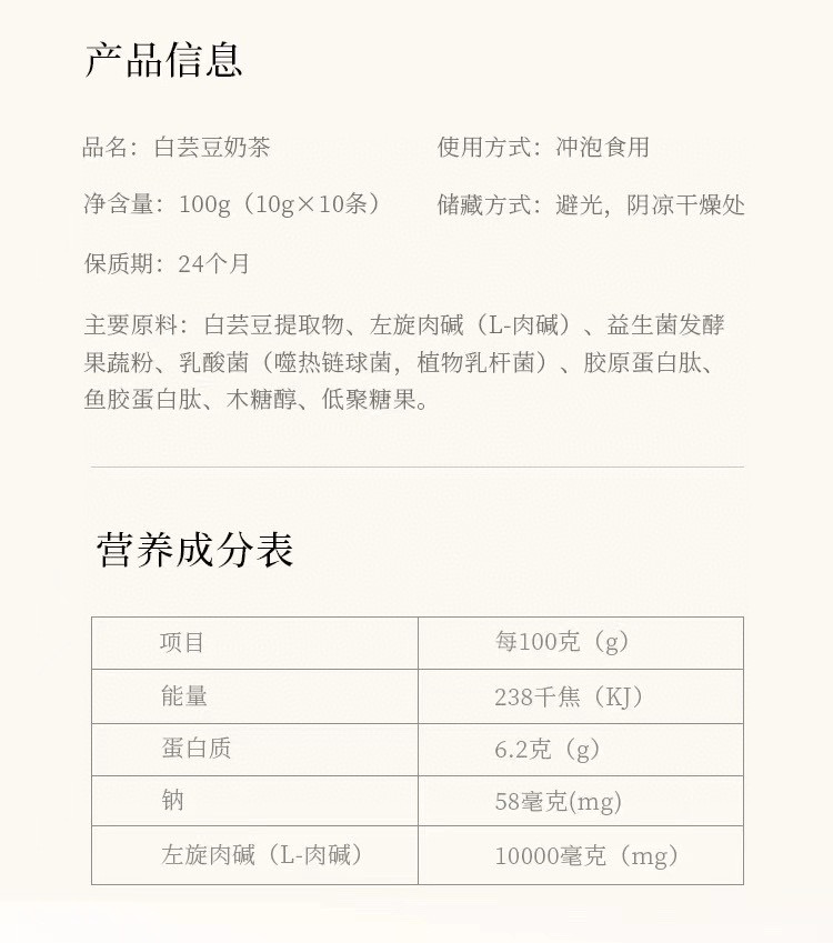 | 【品名】美燃美白芸豆脂流奶茶 【规格】10条/盒 【保质期】2年 【发货包装】纸盒 【产地/发货地】浙江 【发货快递】邮政 【发货区域】新疆,西藏,北京疫情地区不发 【发货时效】48小时,周日节假日顺延 |