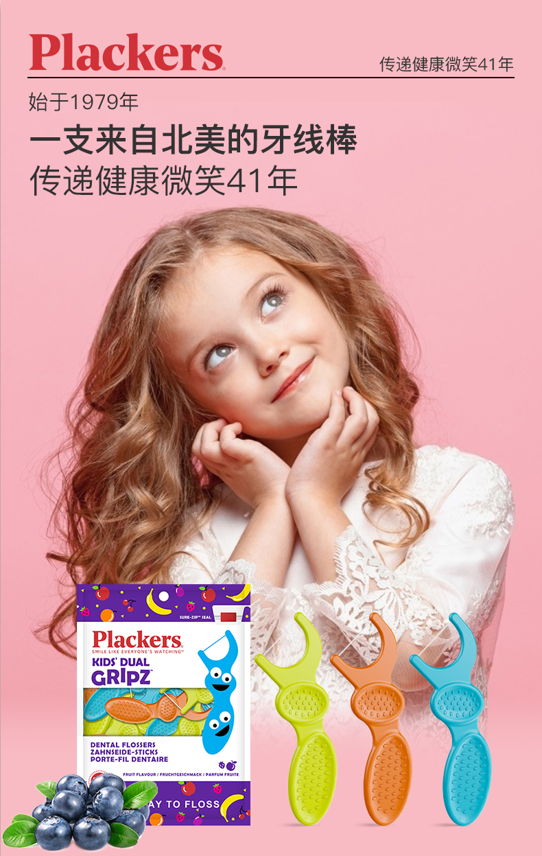 【品牌直发】包邮!Plackers派乐丝儿童专用牙线棒进口水果味袋装75支装