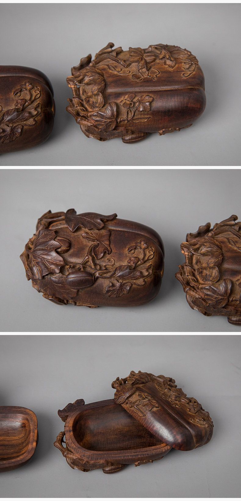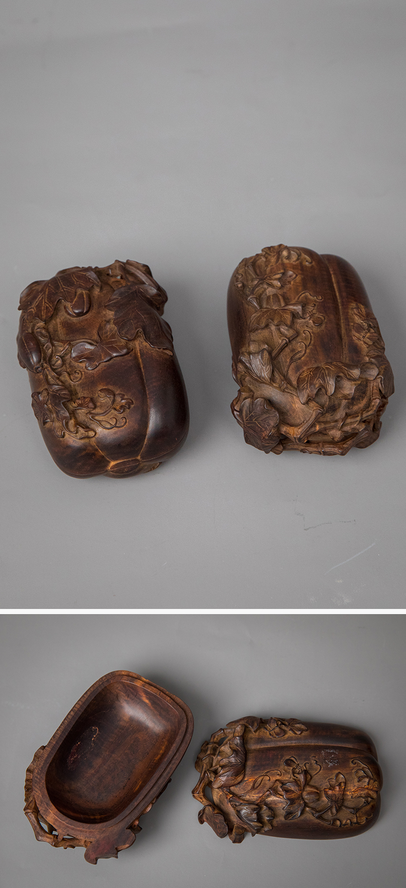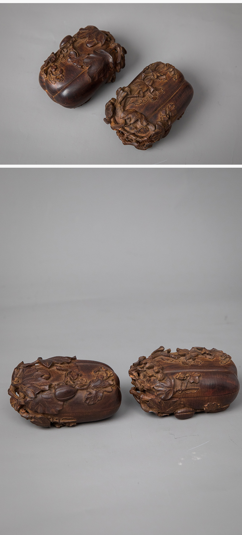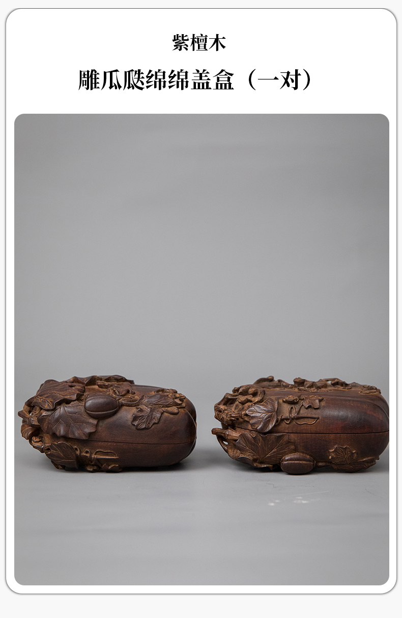 紫檀木雕瓜瓞绵绵盖盒(一对)