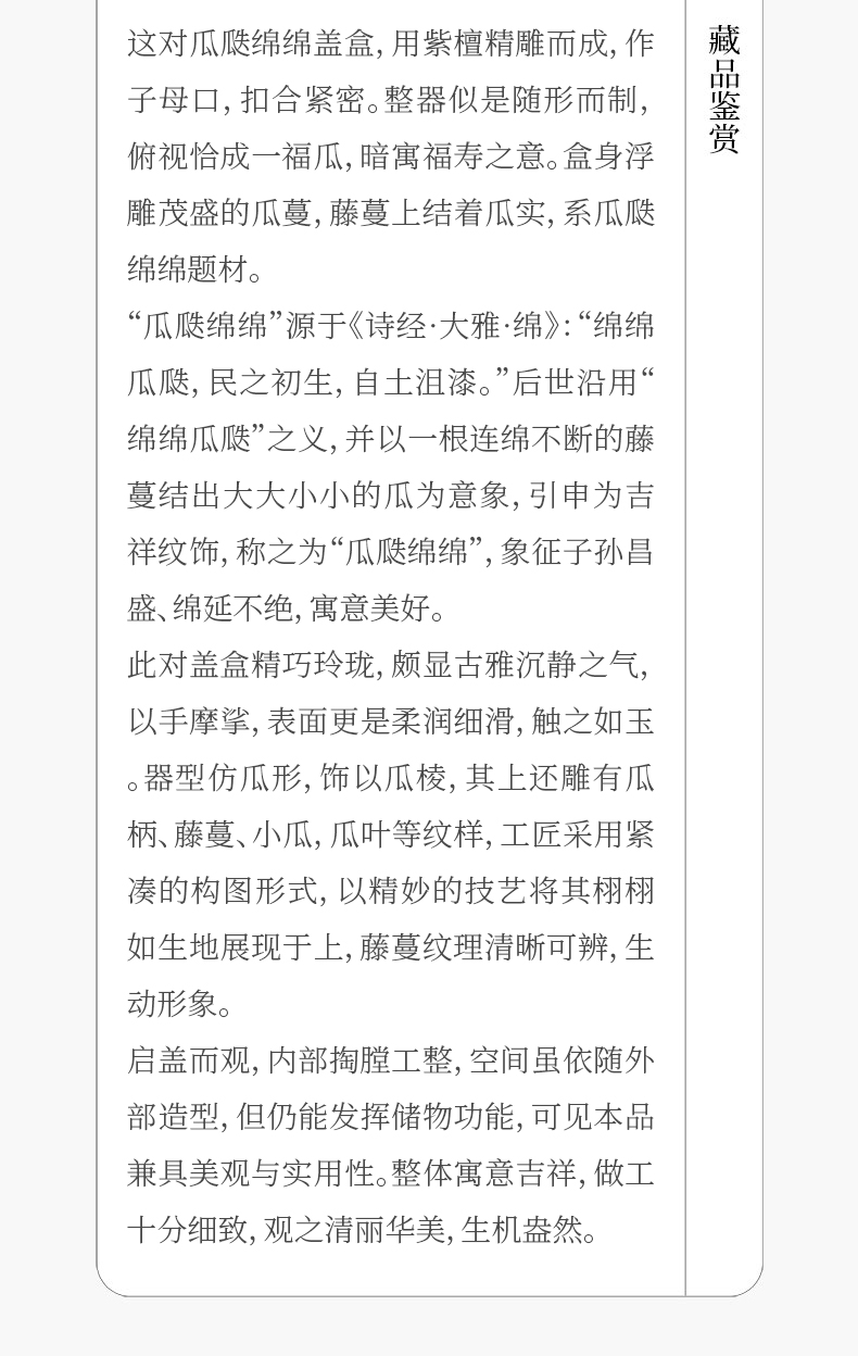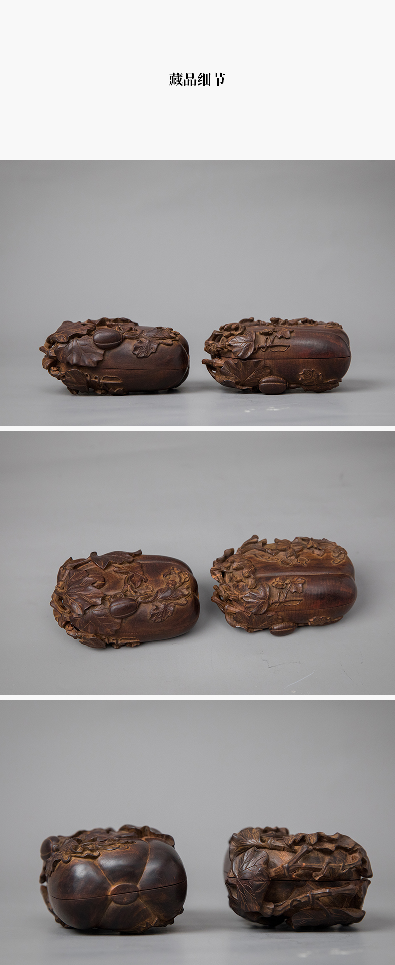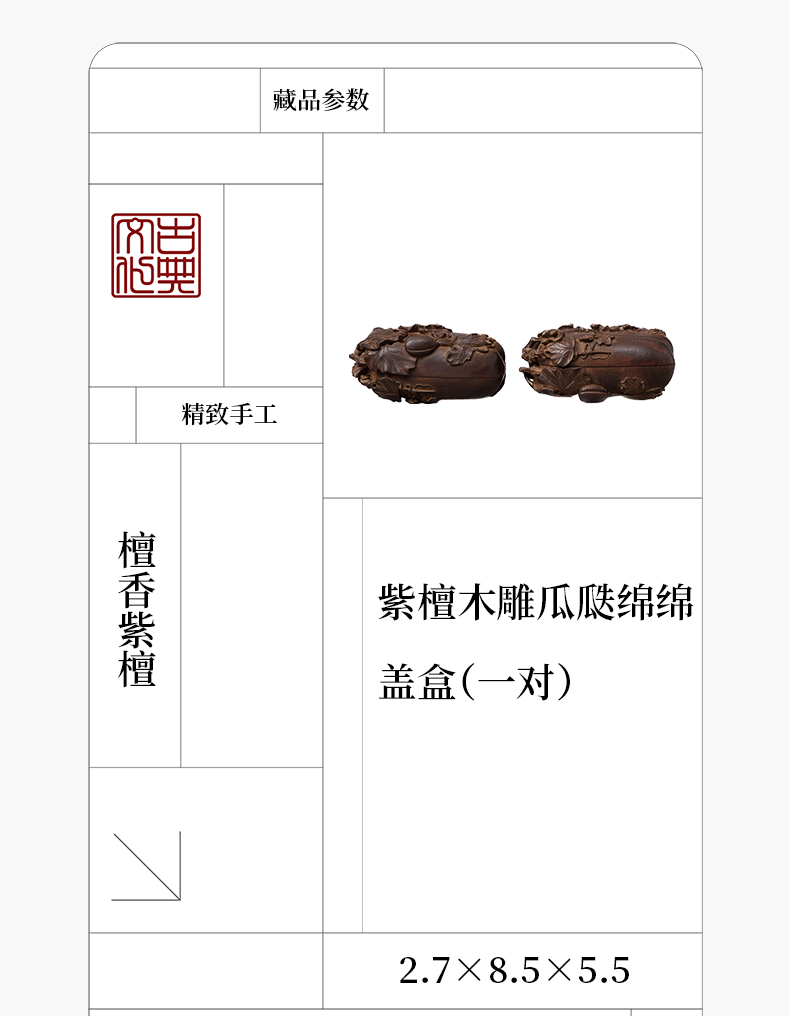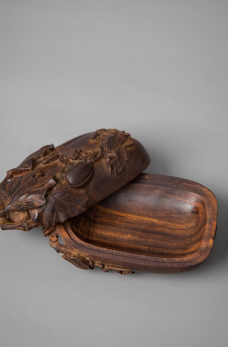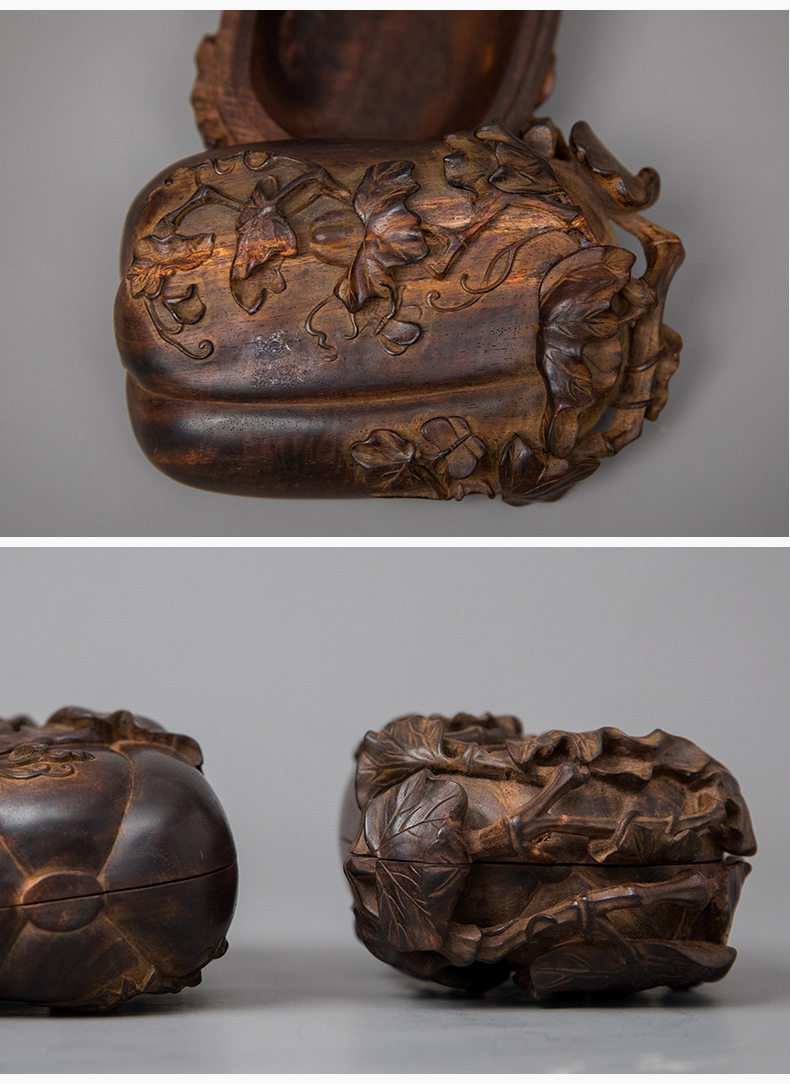 紫檀木雕瓜瓞绵绵盖盒(一对)