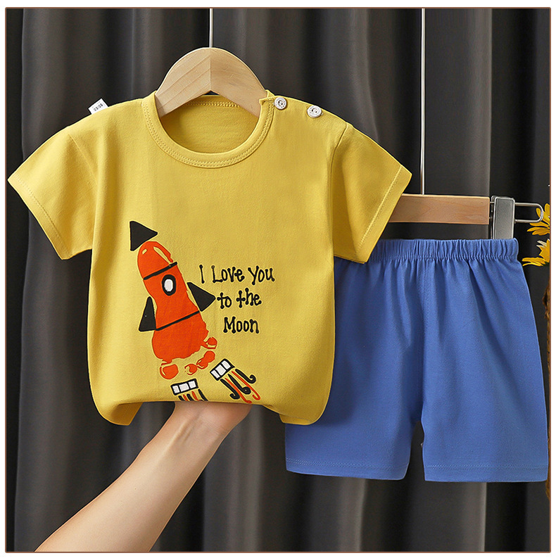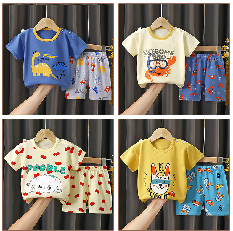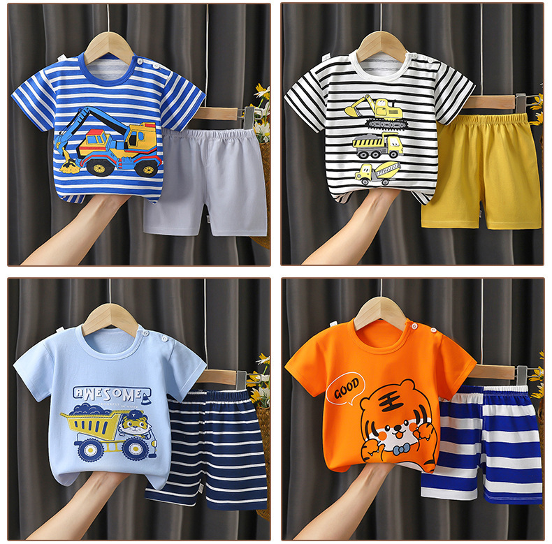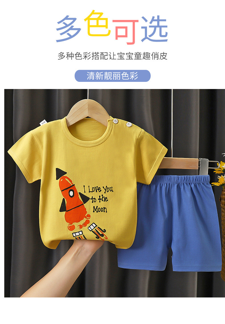 【39元/2套】2023新款儿童短袖套装,萌趣可爱卡通印花,多款可选,精梳棉亲肤透气面料,无荧光剂,纯棉韩版,男女宝宝儿童套装,T恤短裤两件套