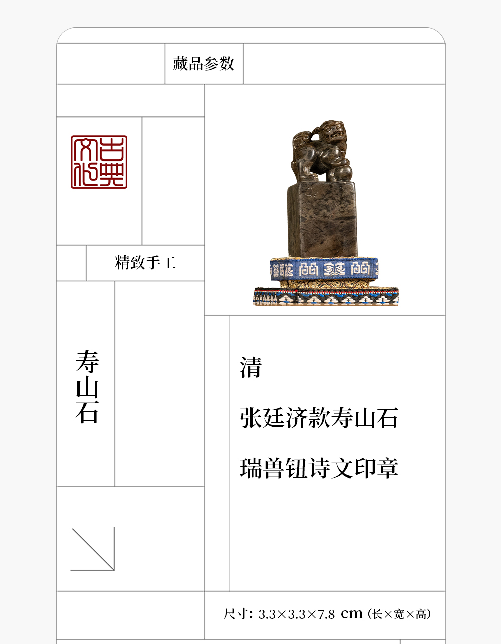 清 张廷济款寿山石瑞兽钮诗文印章