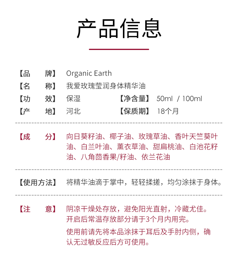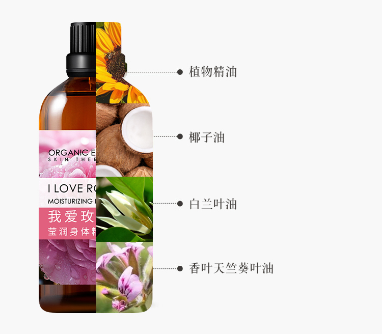 我爱玫瑰莹润身体精华油 | 100ml/瓶 护肤油 身体按摩油 8小时保湿 自然花香 有机地球