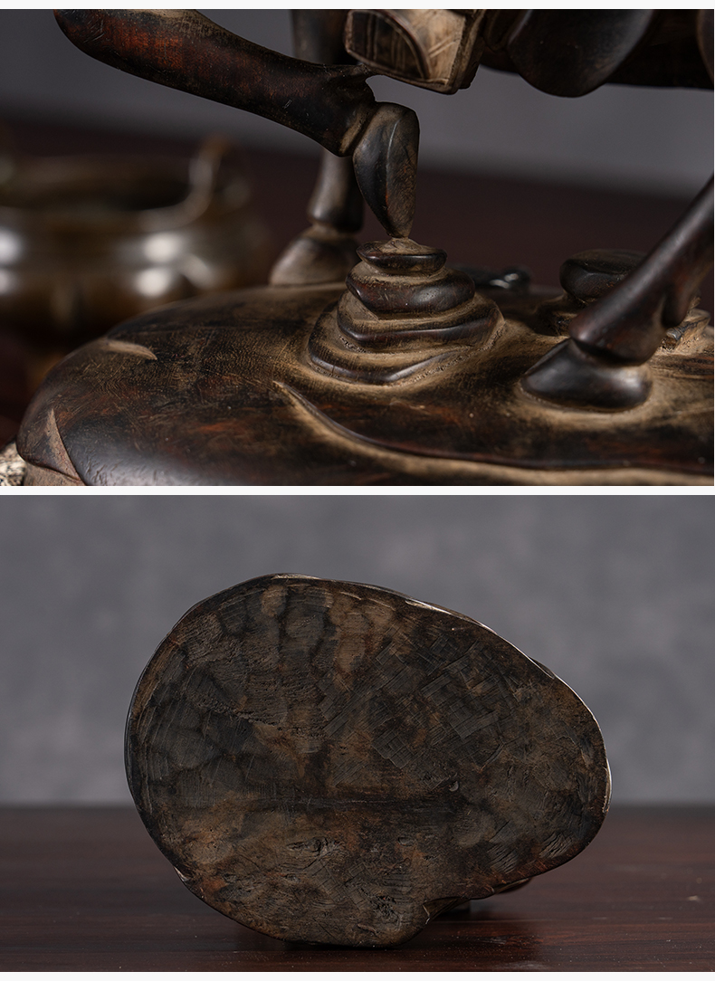 清 沈景修款端石狮纹辟雍砚(红木天地盖)