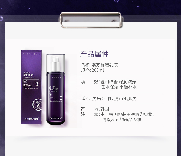 韩国德妃Dermafirm紫苏舒缓乳液200ml