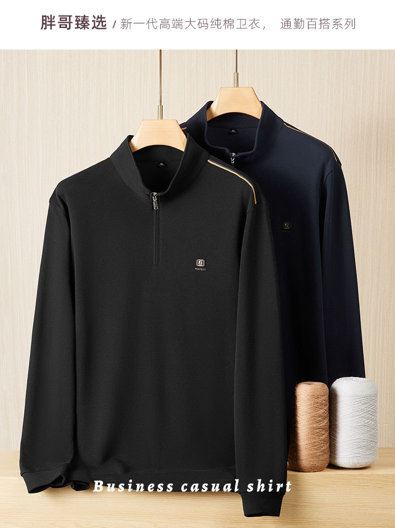 【100%棉】【DDS】大依优型大码男装立领半拉链长袖T恤纯棉卫衣休闲百搭运动风上衣