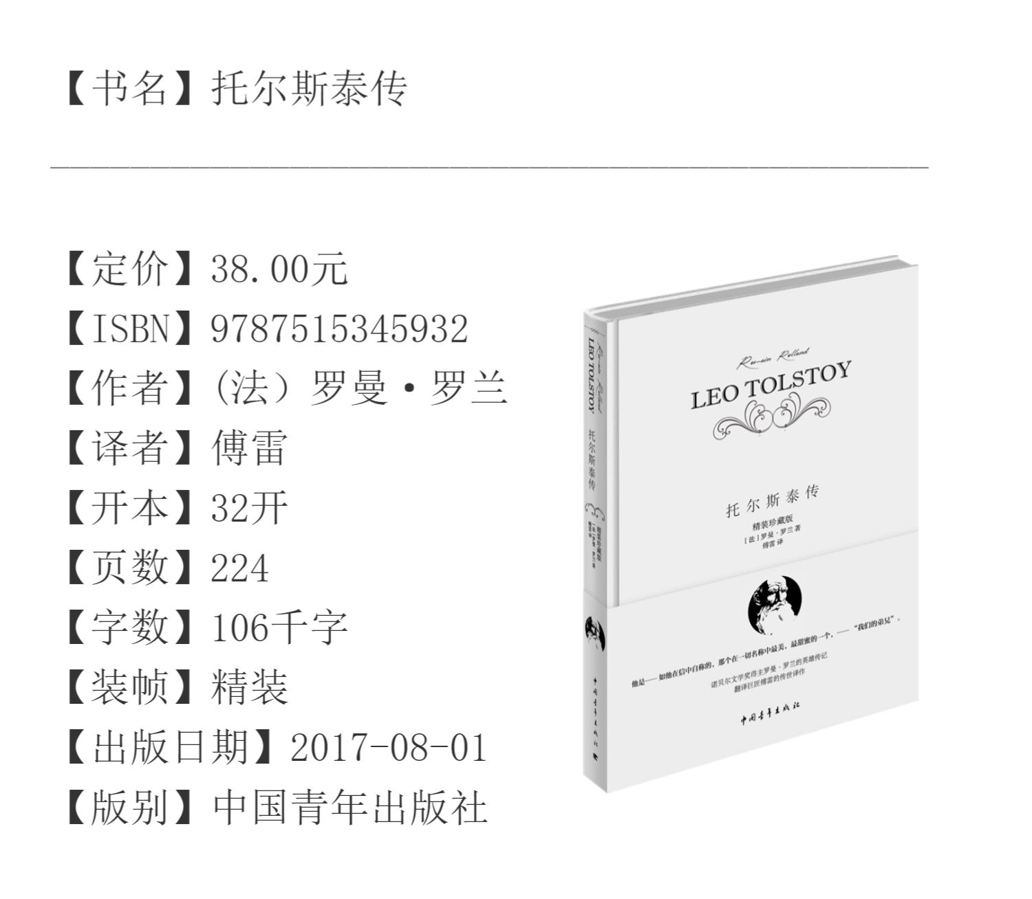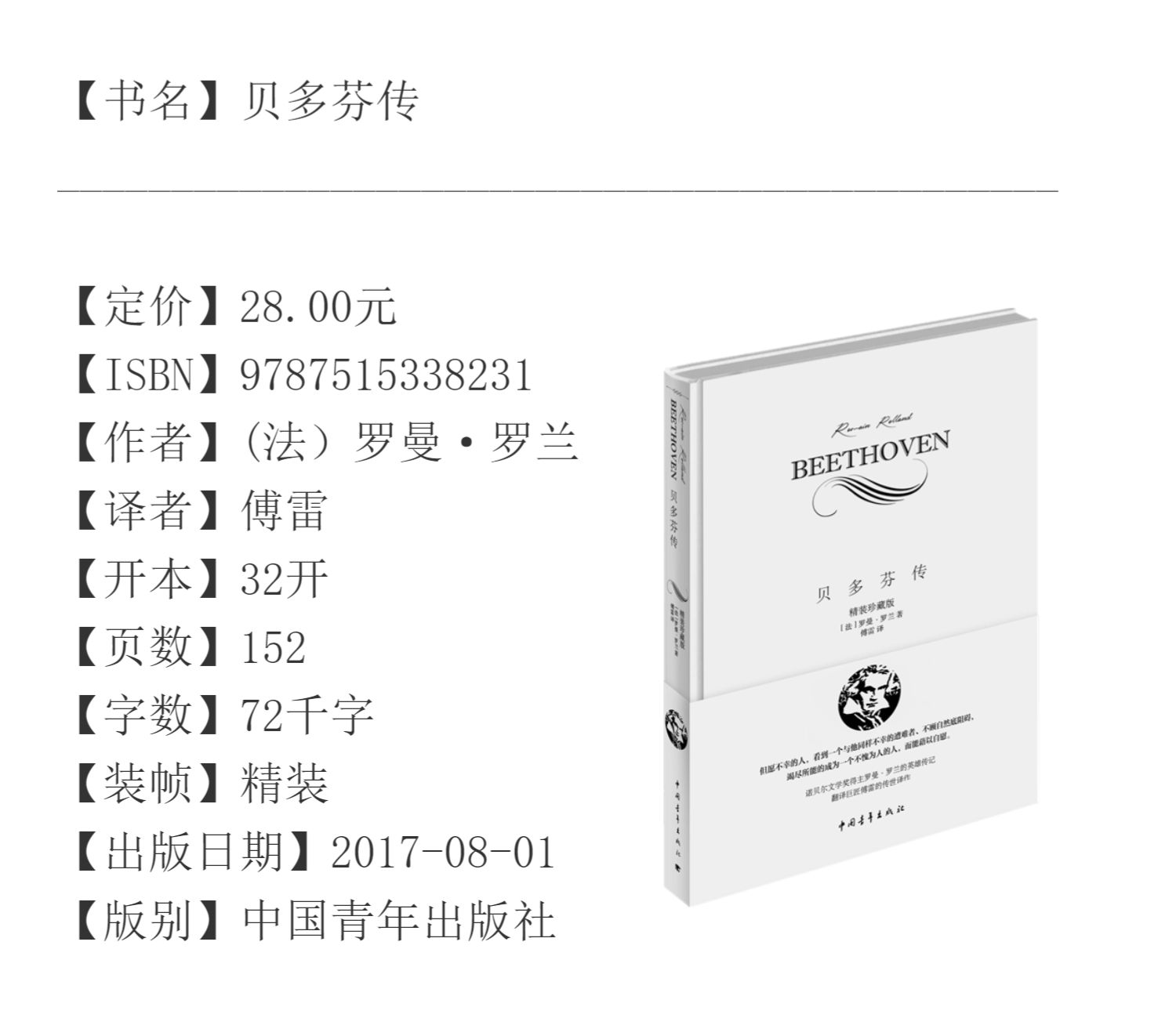 名人传 贝多芬传/米开朗琪罗传/托尔斯泰传 (法)罗曼罗兰著 傅雷译 小32开精装便携本 中国青年出版社