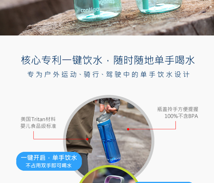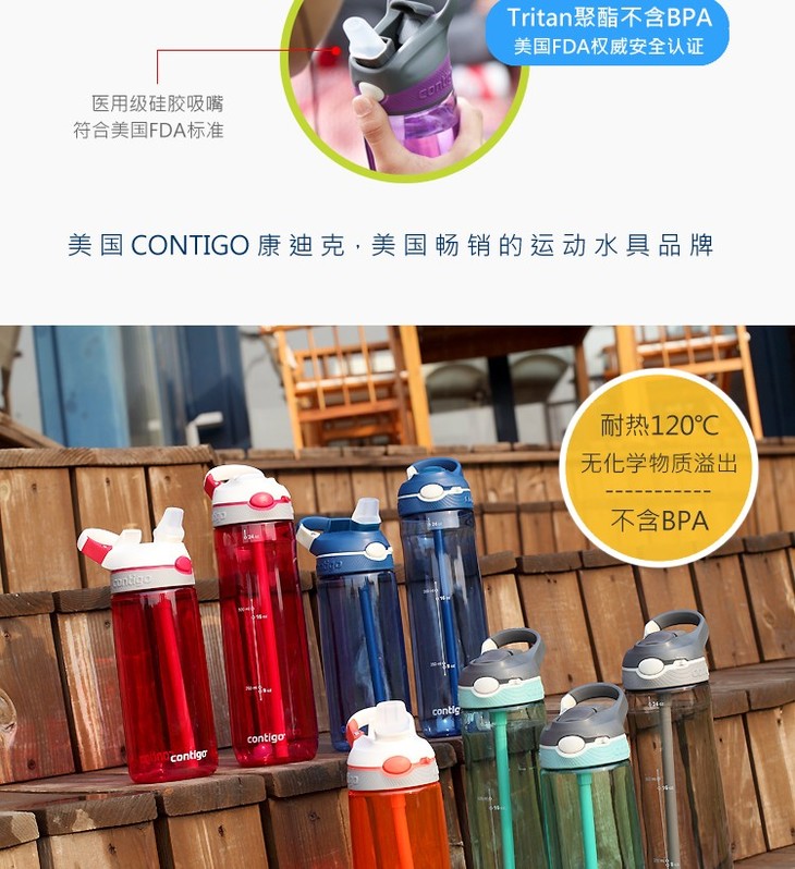 美国康迪克Contigo成人锁扣吸管杯560ml 蒂芙尼蓝【一般贸易】