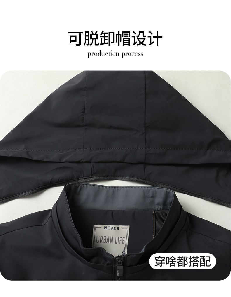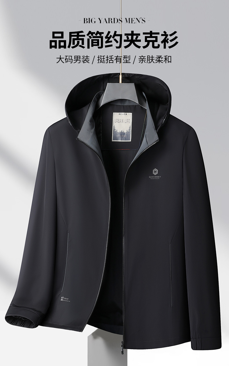 【可拆卸帽】【新款DSZ】大依优型大码男装连帽夹克加肥加大休闲夹克胖子宽松外套上衣户外