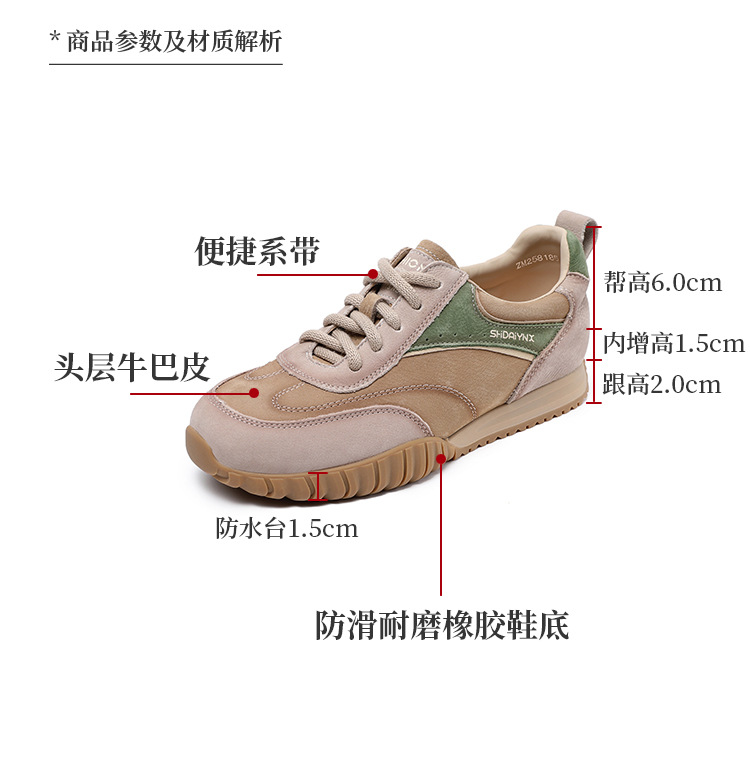 本色复古轻便德训鞋,软底百搭内增高运动休闲鞋 ZM258185