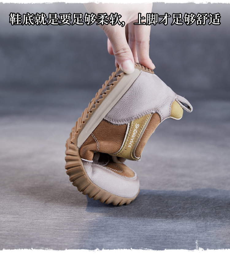 加绒保暖系带厚底休闲头层牛皮,复古平底毛毛棉鞋ZM258718