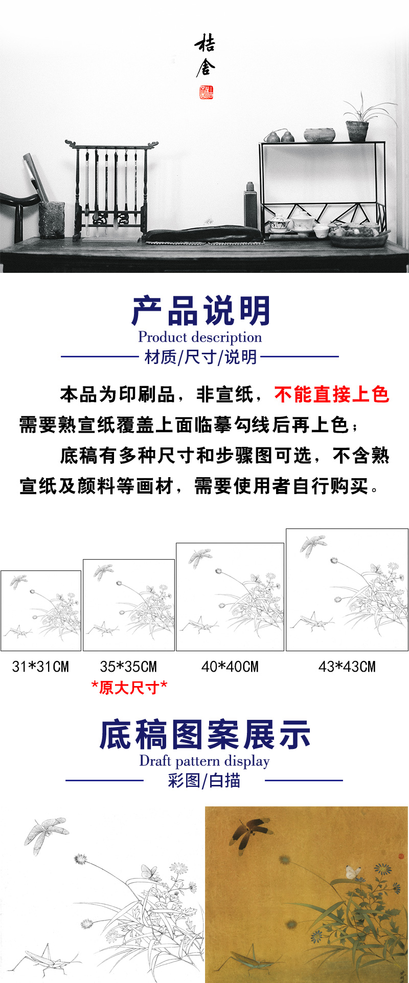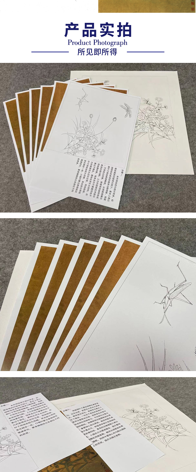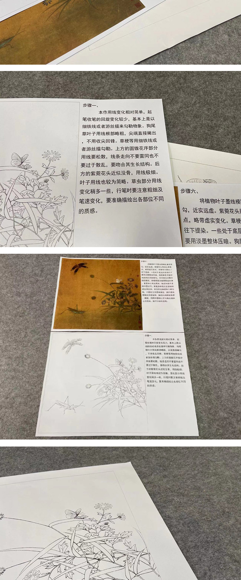 【有步骤、大彩图】李晓明工笔画白描底稿斗方小品《临宋写生草虫图》蜻蜓蚱蜢初学者临摹花鸟线稿KC37