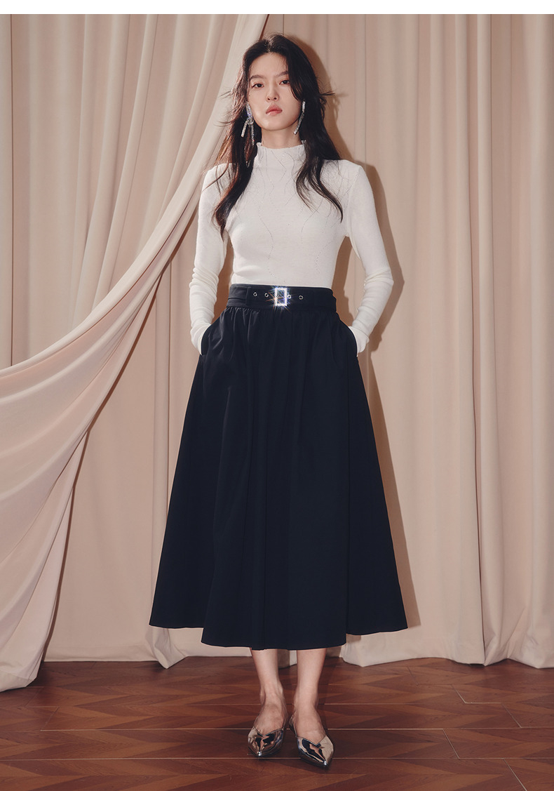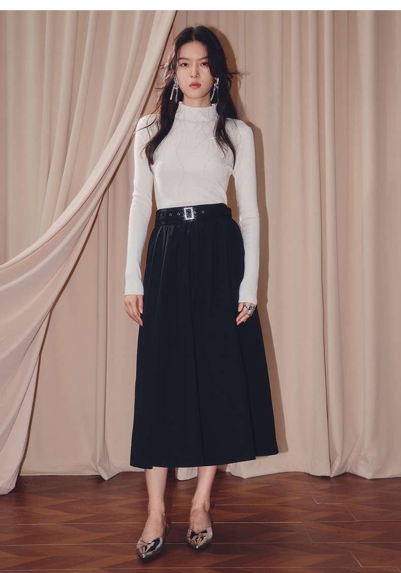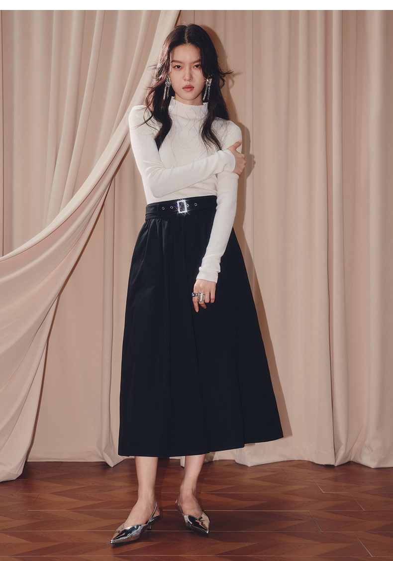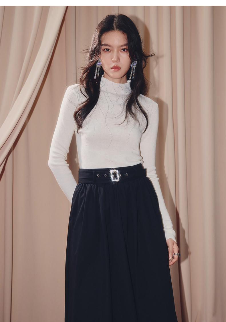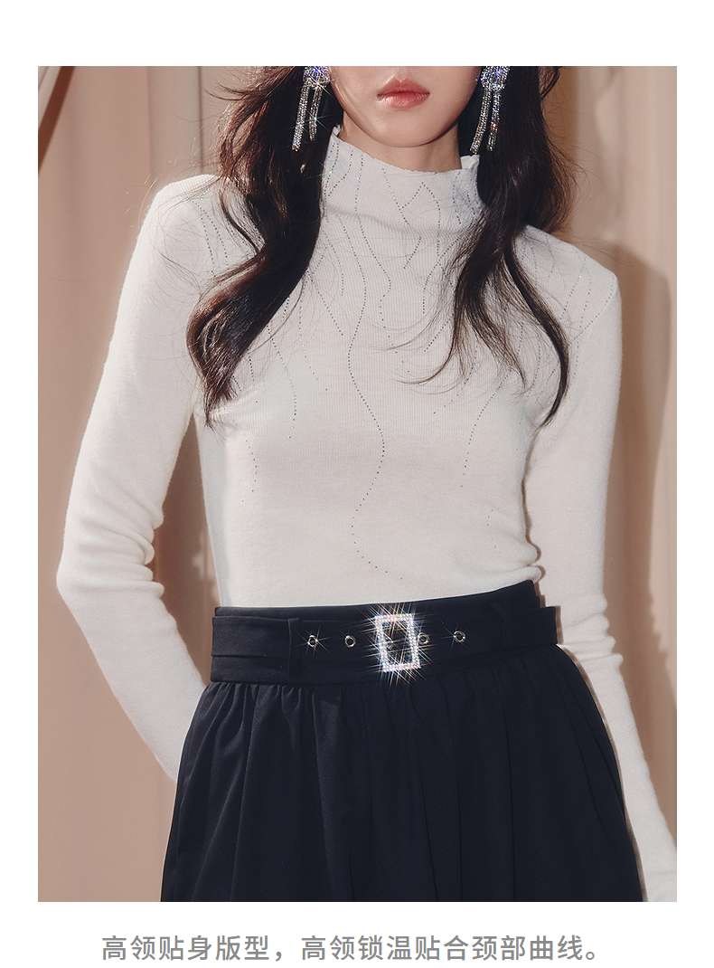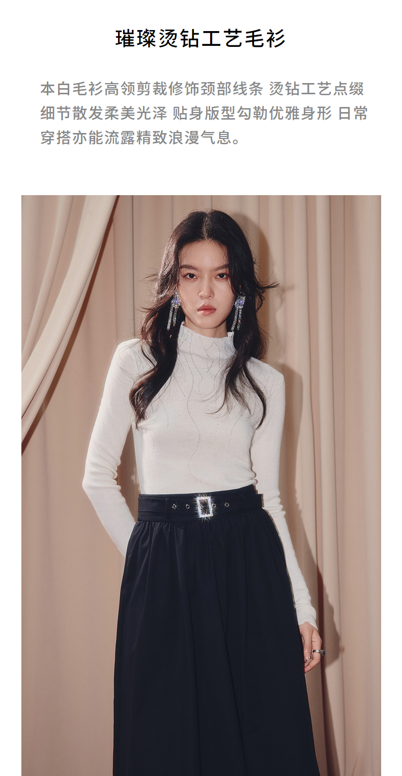 MAXRIENY璀璨烫钻半高领套头羊毛混纺针织毛衫25冬款内搭打底上衣(货号:MF86SW514)
