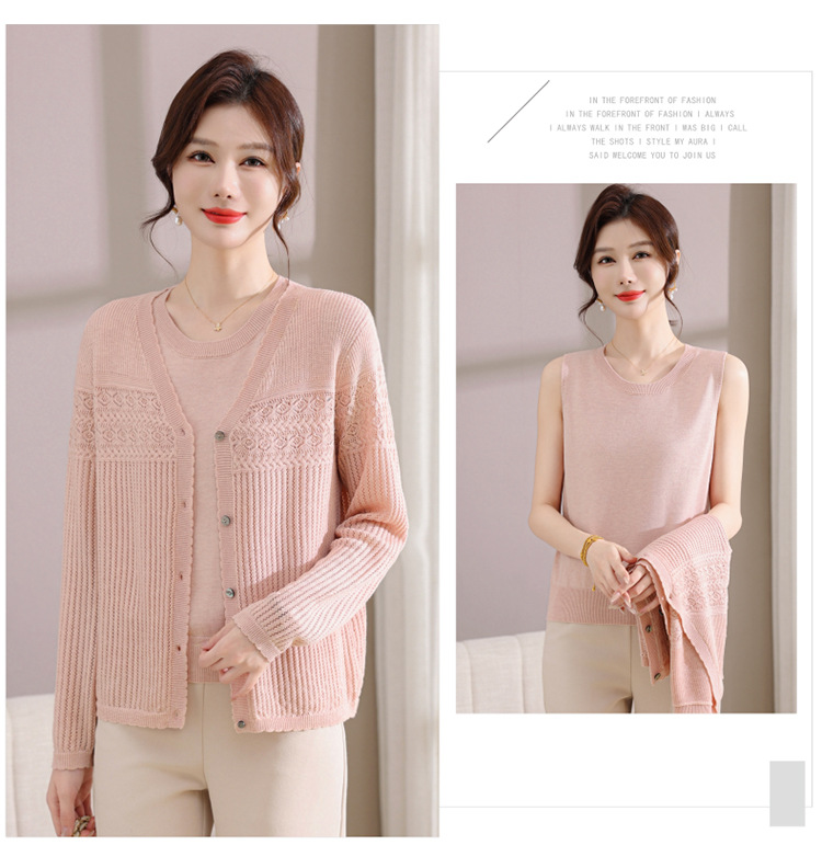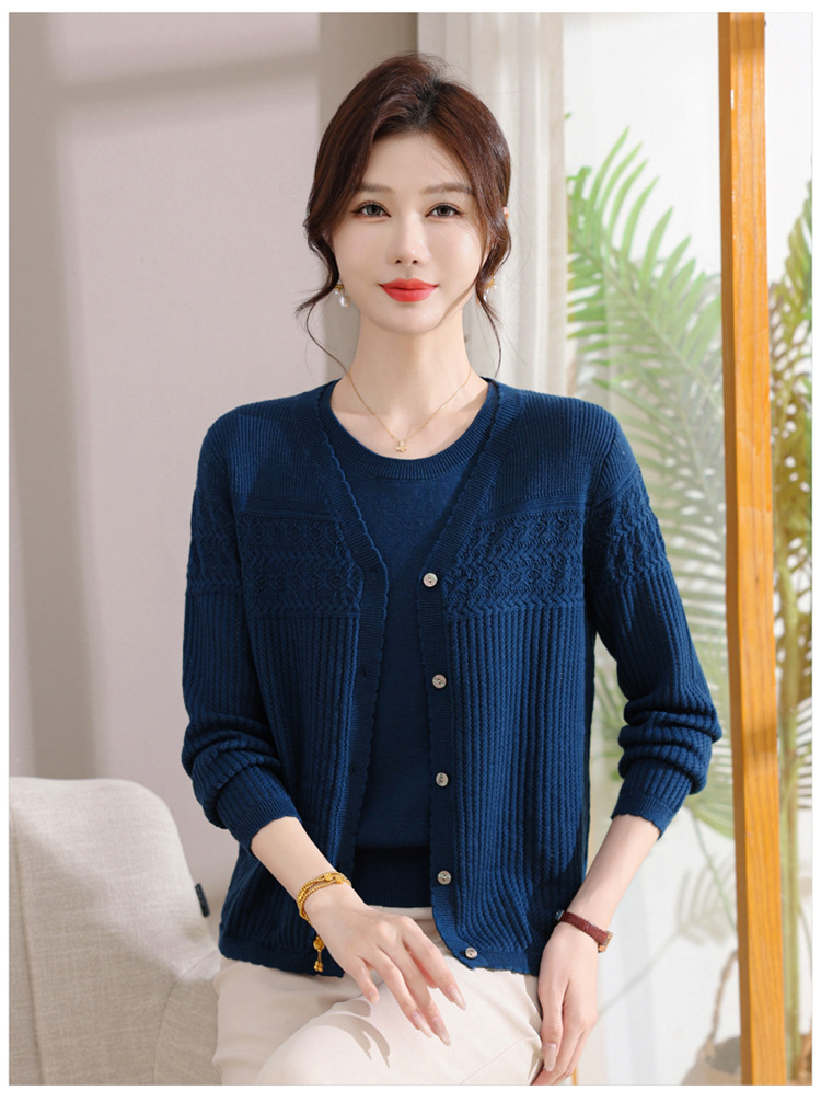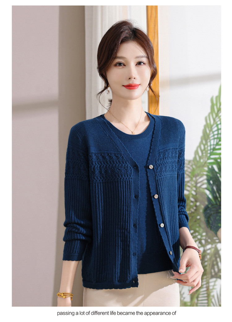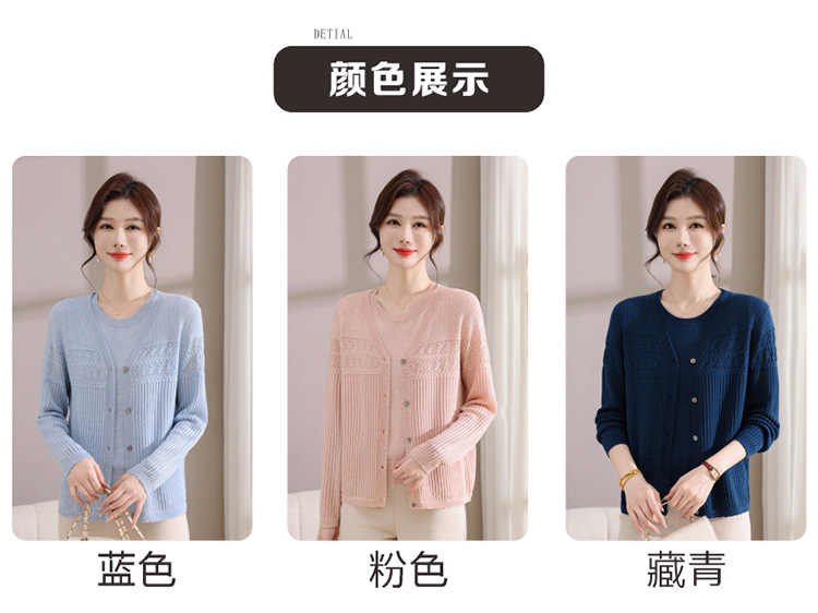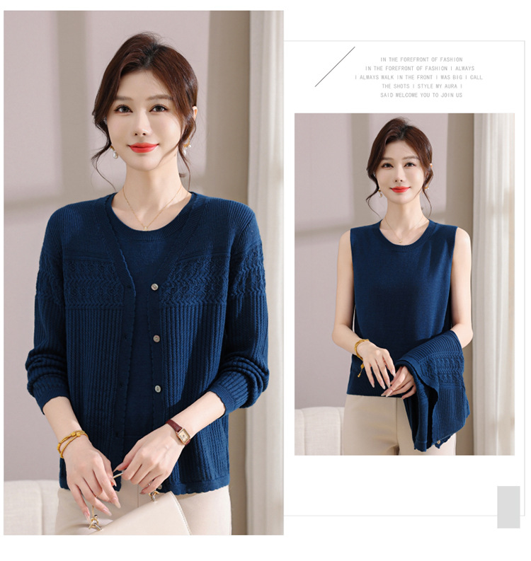 W018-9058-100-168中年妈妈春秋装毛衣洋气两件套打底上衣2025新款中老年针织衫女装