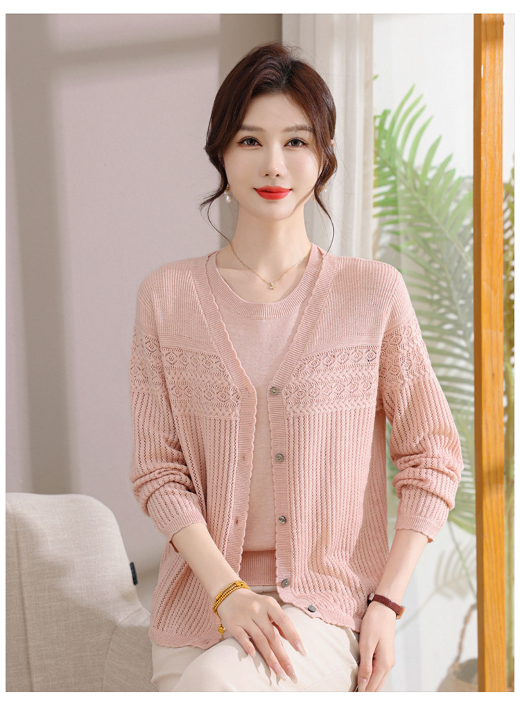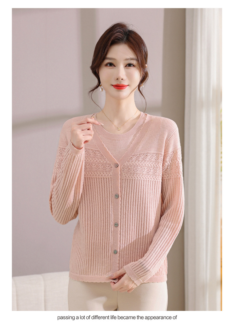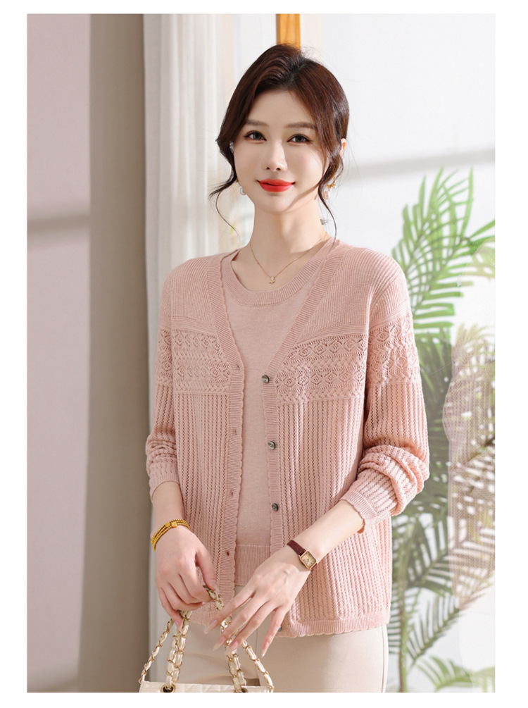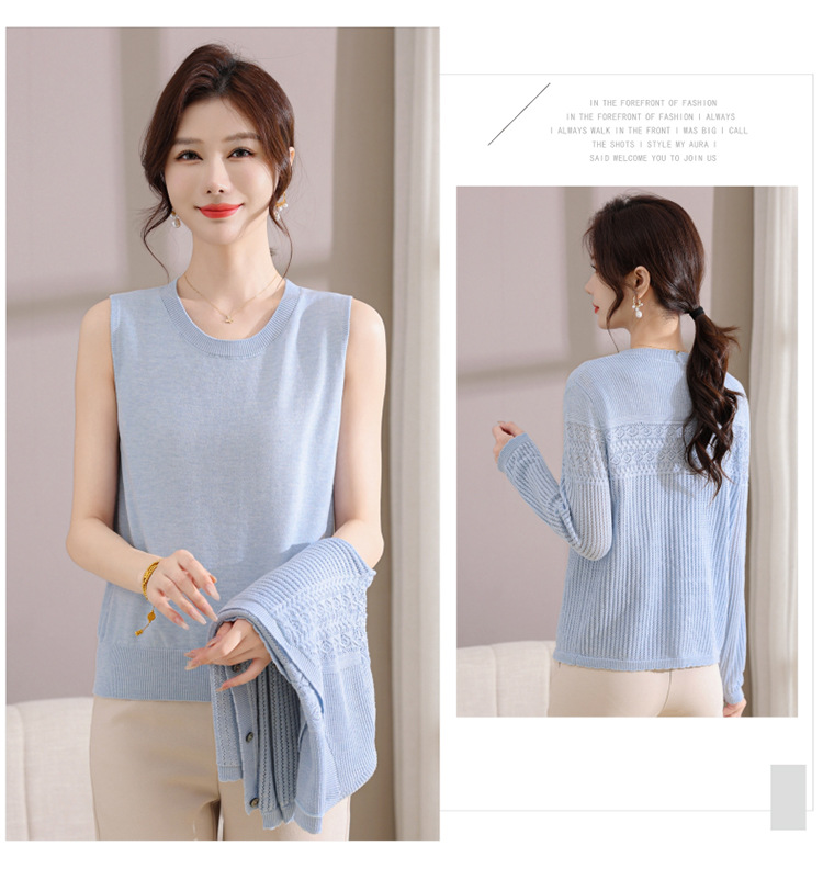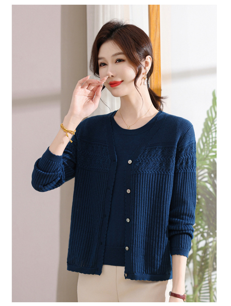 W018-9058-100-168中年妈妈春秋装毛衣洋气两件套打底上衣2025新款中老年针织衫女装