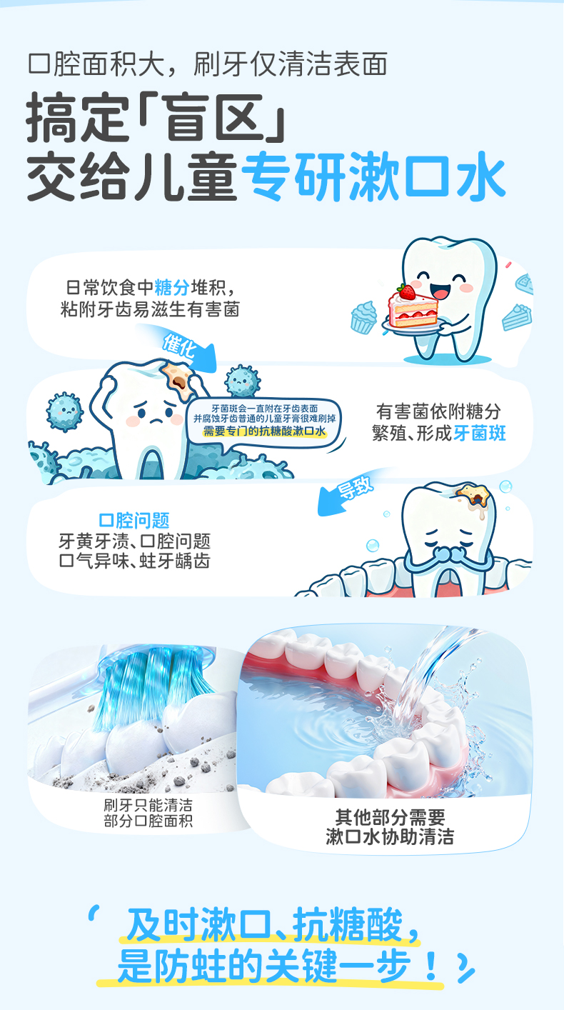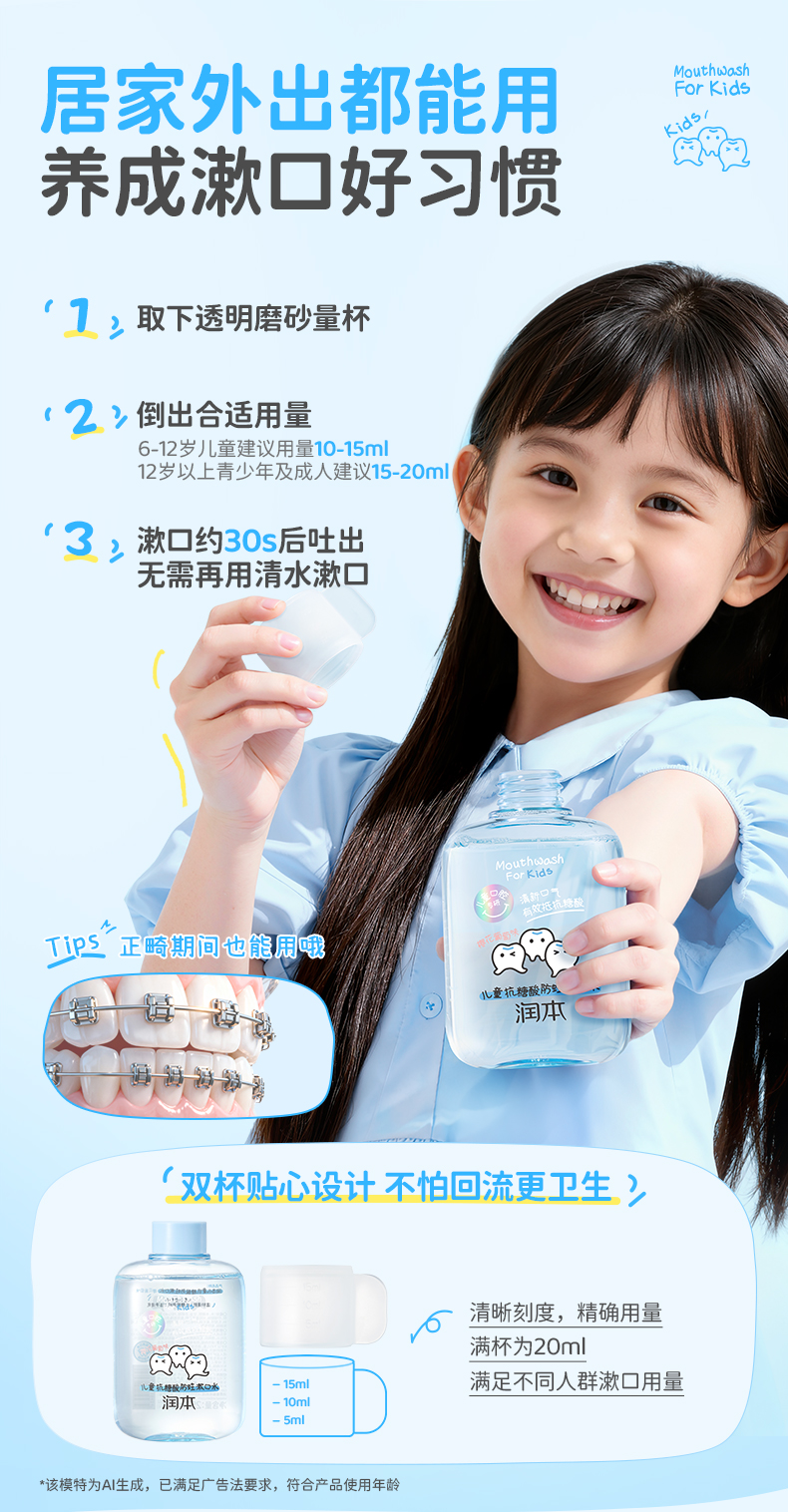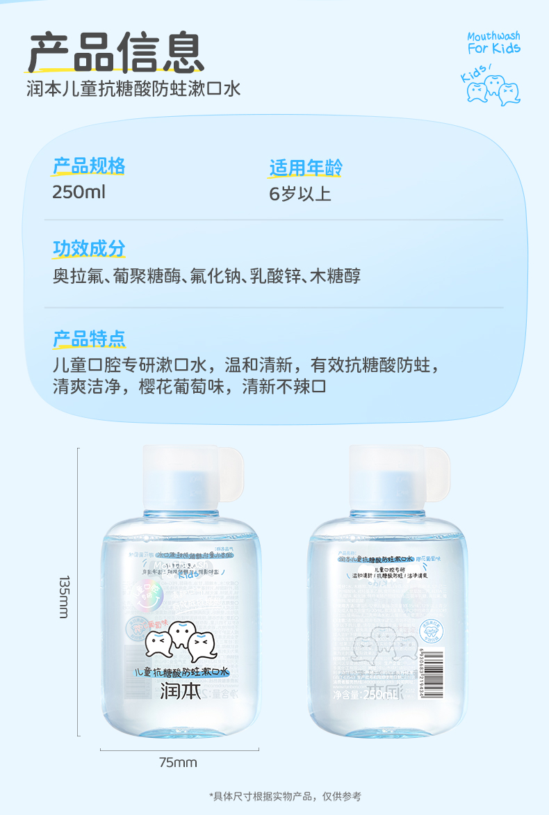 【长轻专属】润本儿童口腔系列 防蛀变色牙膏 漱口水 清新口气 抗糖酸防蛀牙