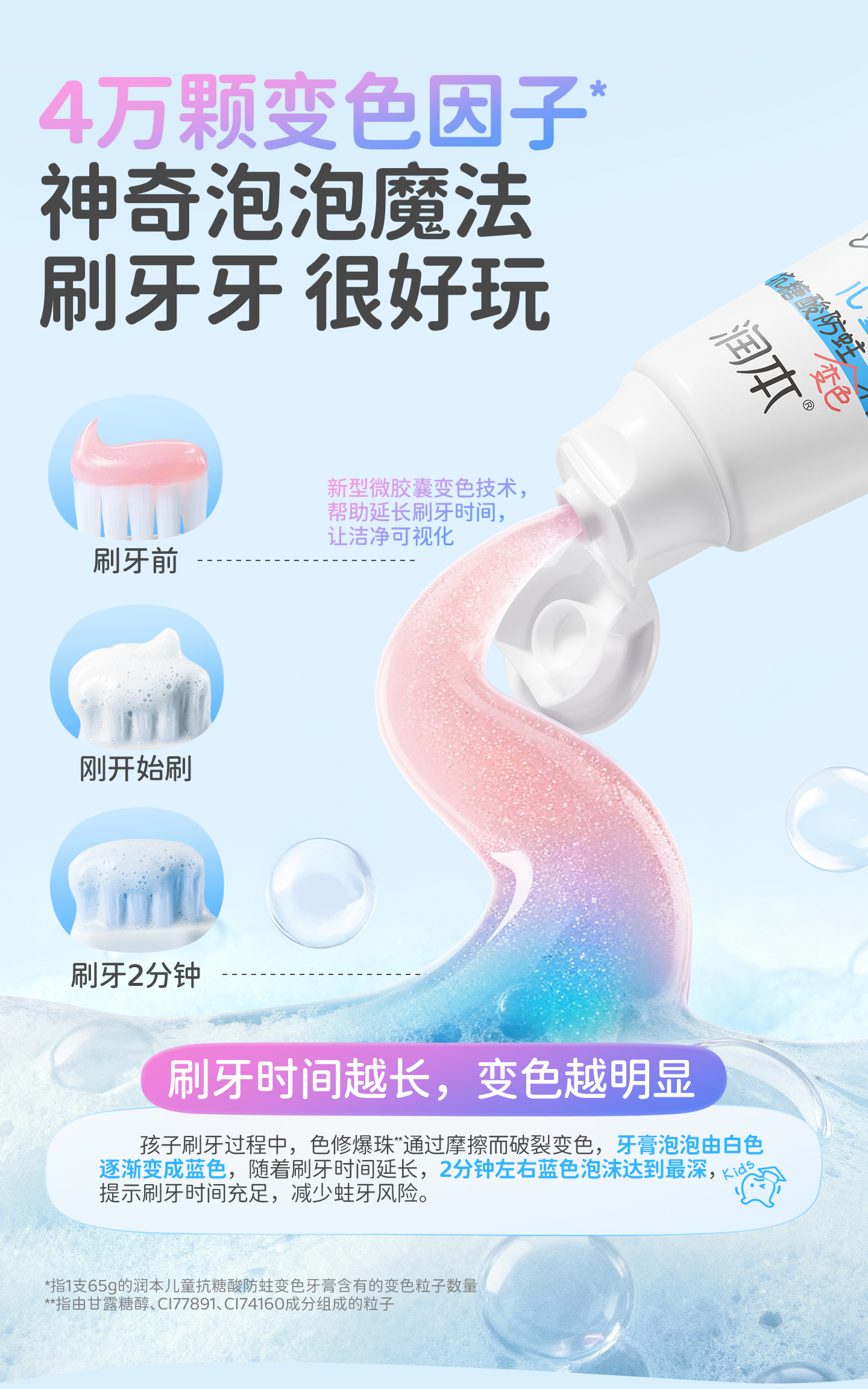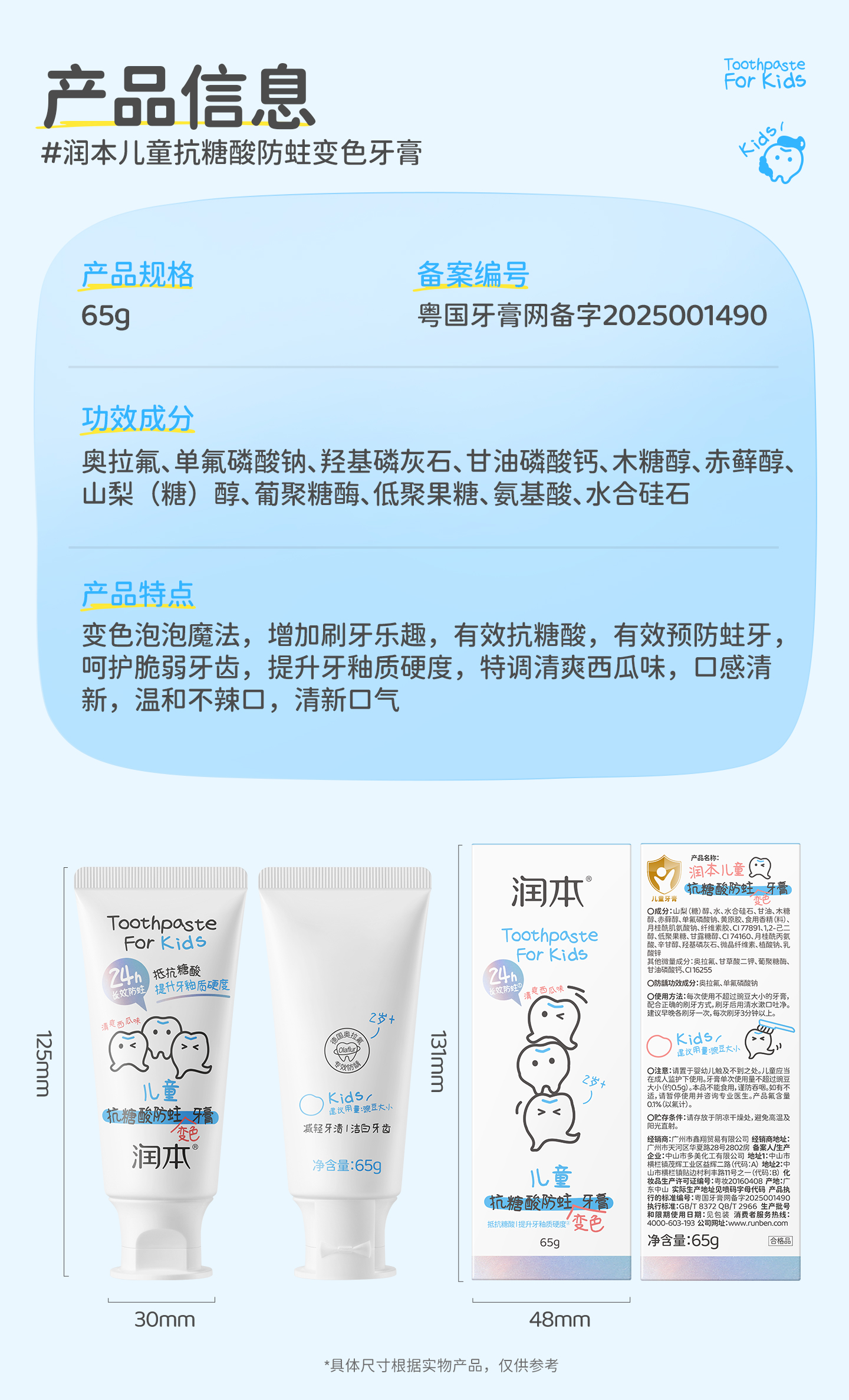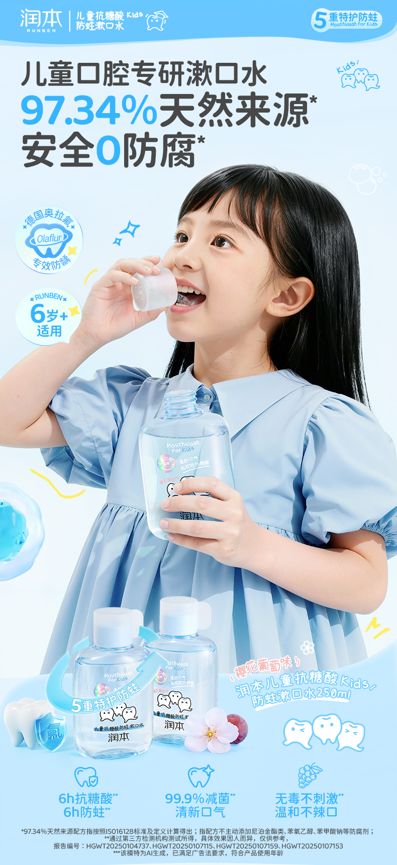 【长轻专属】润本儿童口腔系列 防蛀变色牙膏 漱口水 清新口气 抗糖酸防蛀牙