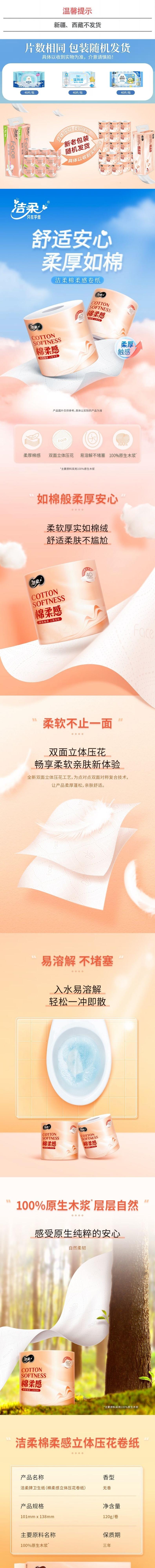 洁柔 棉柔感有芯卷纸4层120g*10卷+赠湿厕纸40抽*1包(新老随机) JRZ002