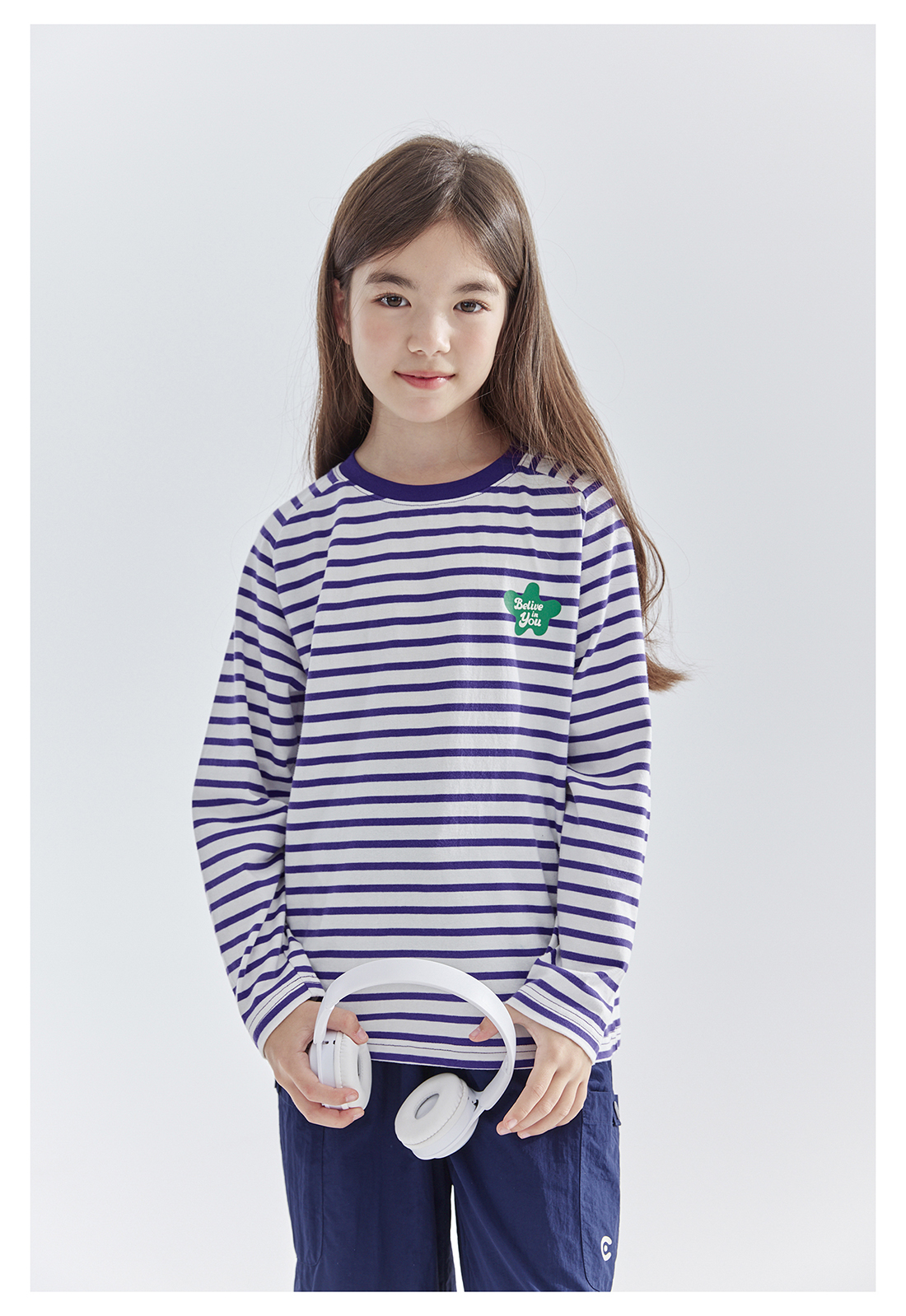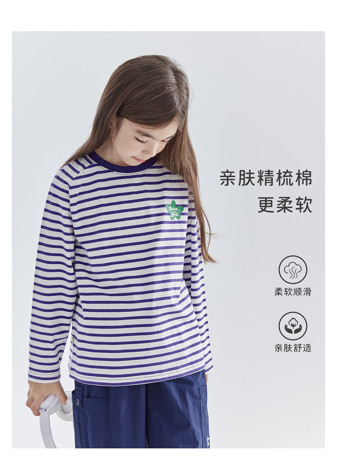 cicochild25年春季新款儿童百搭色彩条纹T恤长袖打底衫女童亲子款