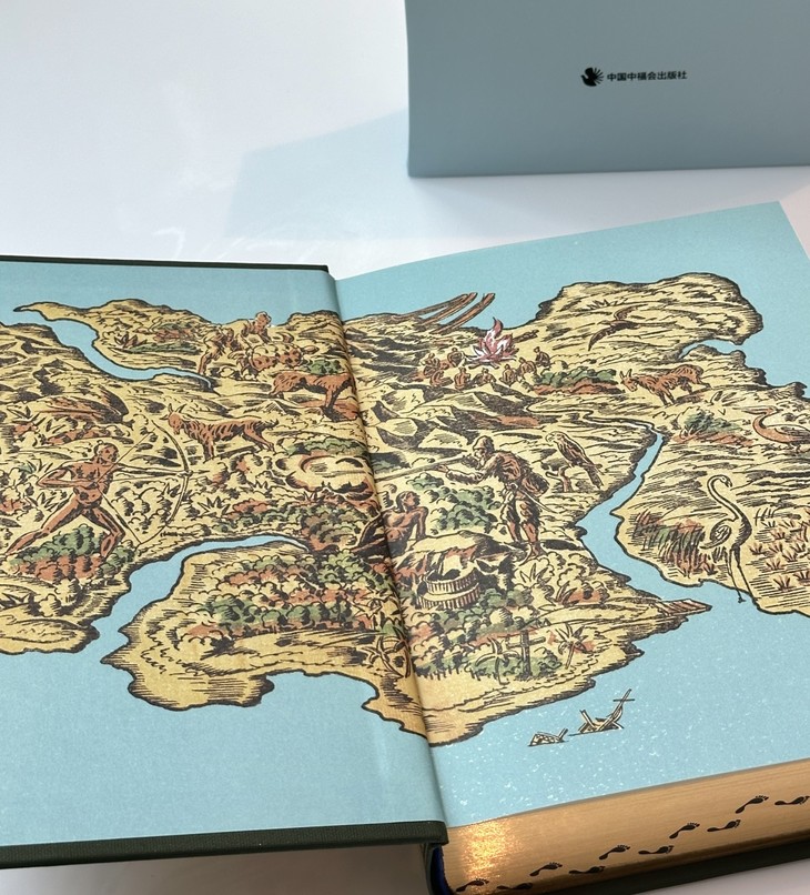 环衬为艺术纸+印刷图案,特别选用鲁滨孙荒岛地图
