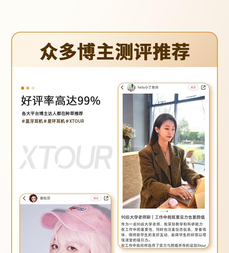 XTOUR女士蓝牙耳机高颜值高音质久戴不痛入耳式降噪耳麦
