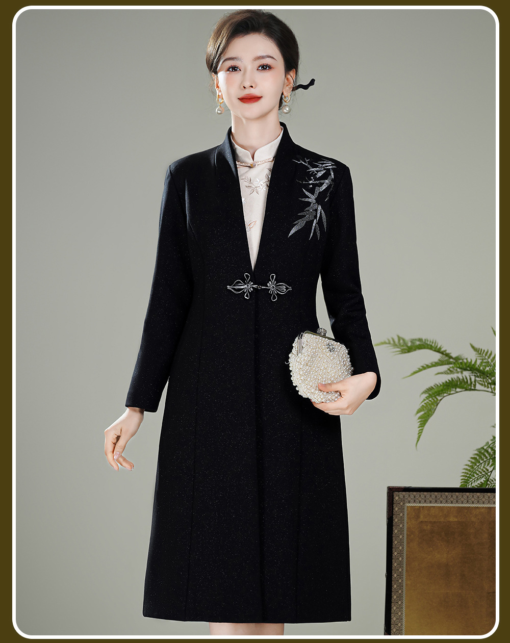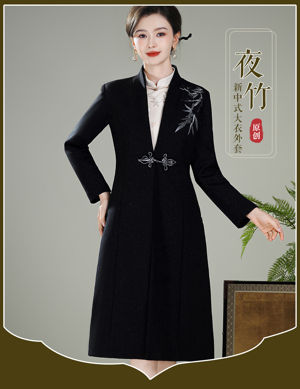 【夜竹】新中式国风刺绣花,中长款旗袍大衣风衣外套XGT-T25137
