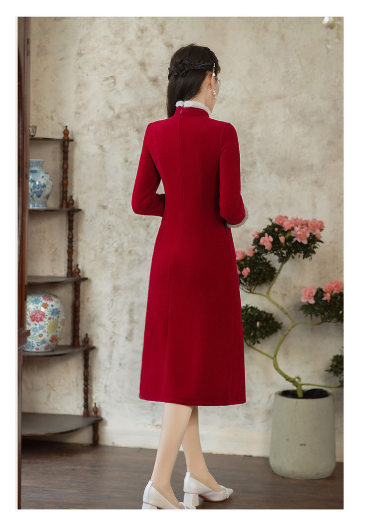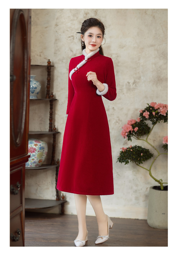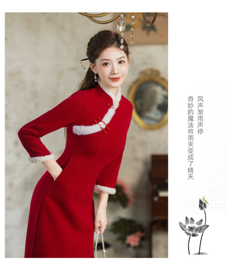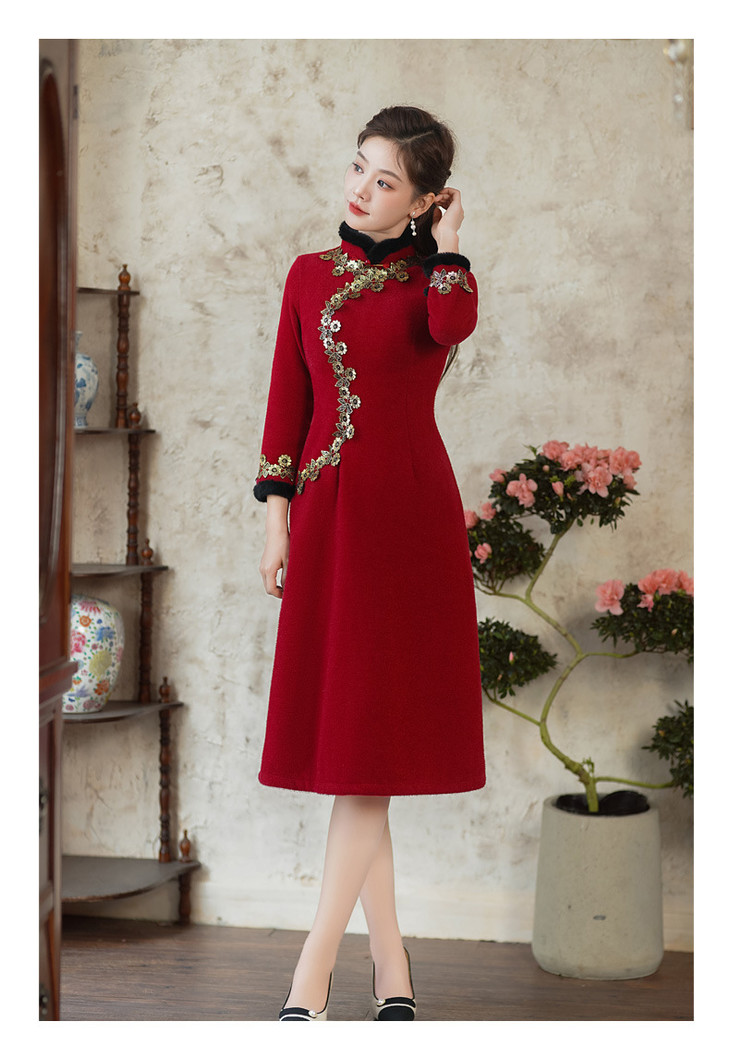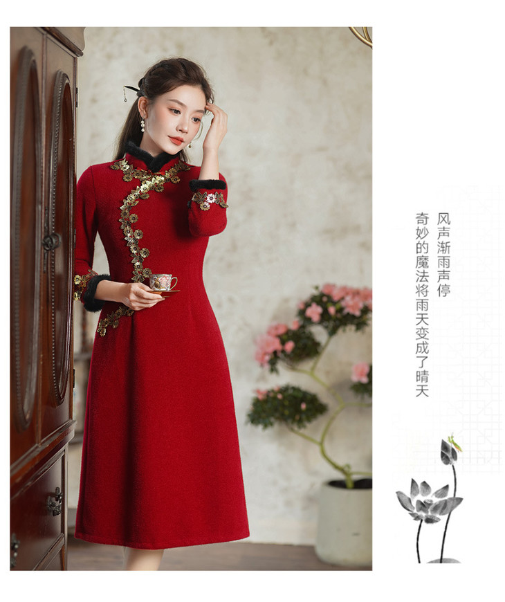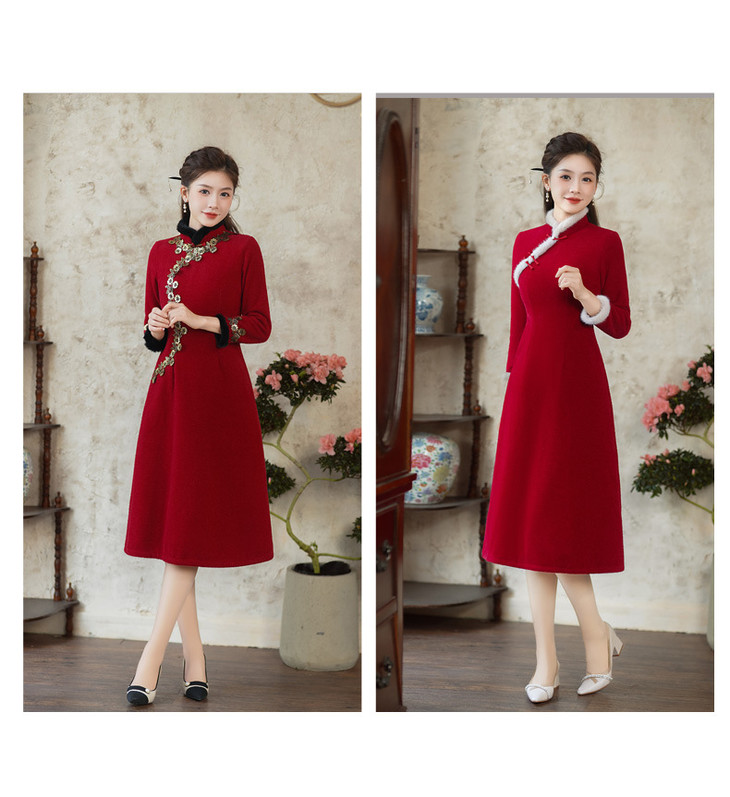 红色旗袍长袖加厚,新娘敬酒服改良连衣裙国风GSJ5542