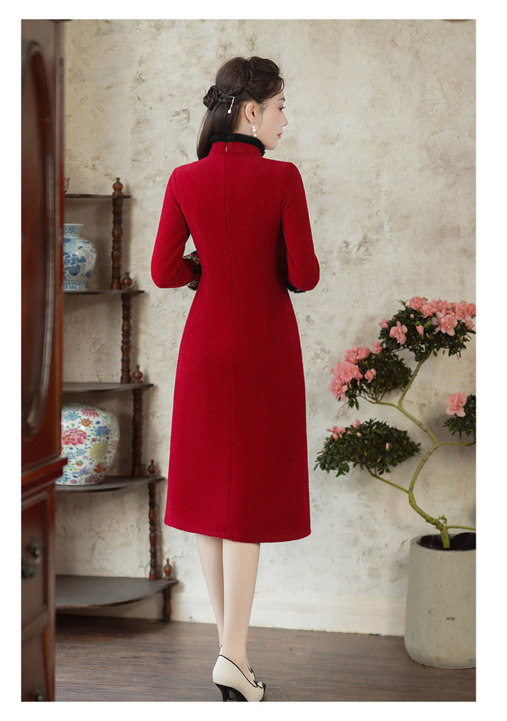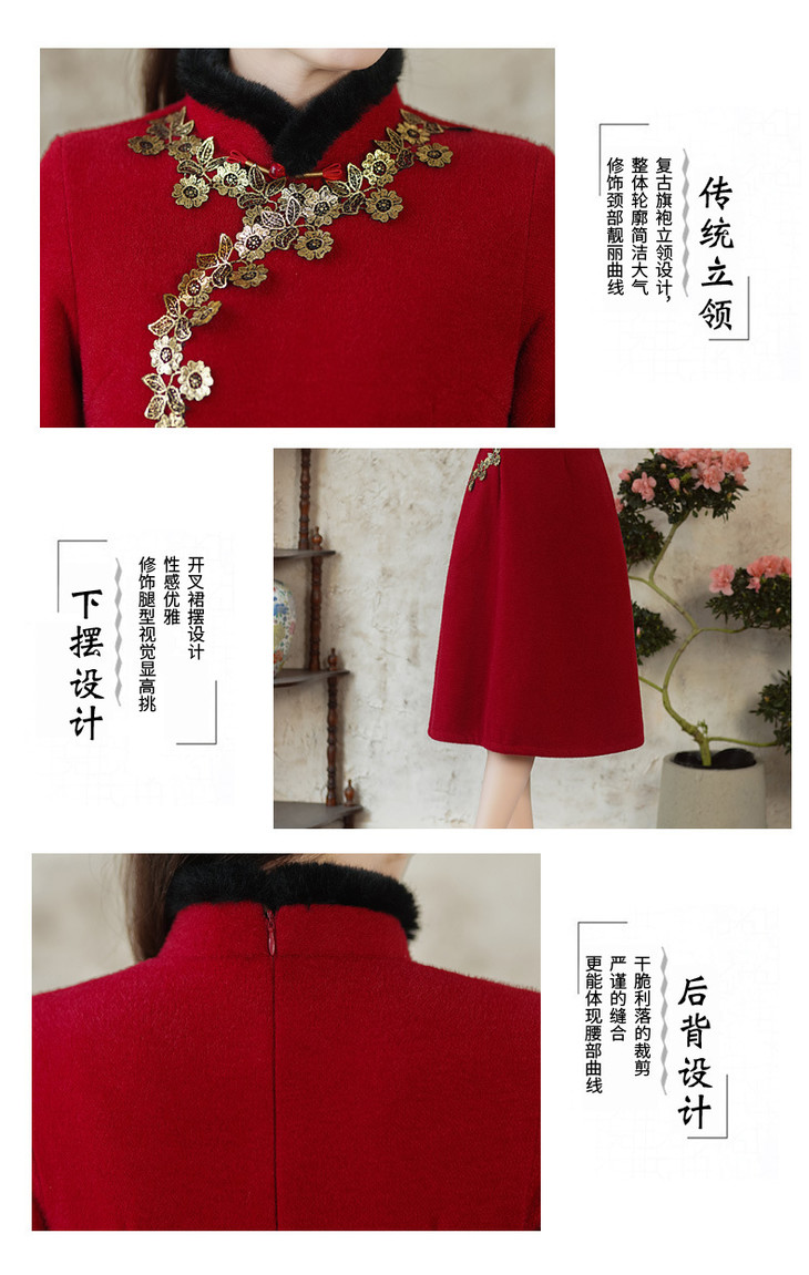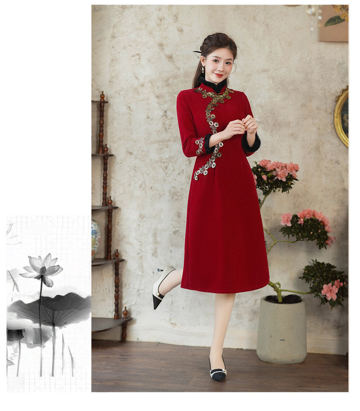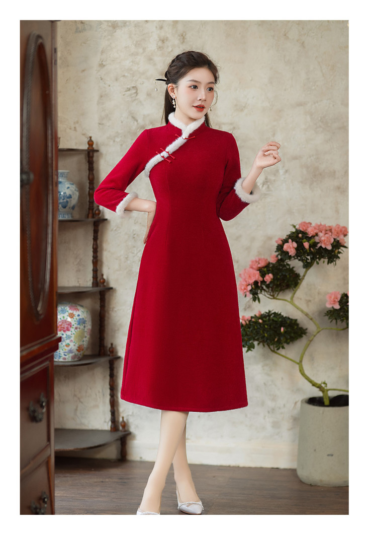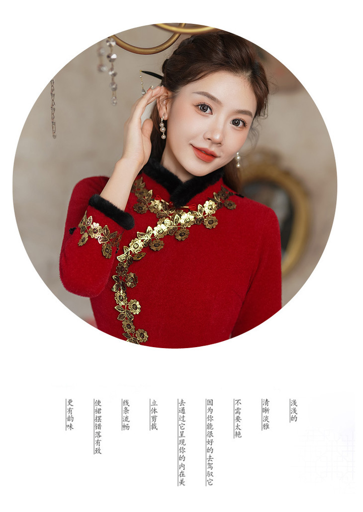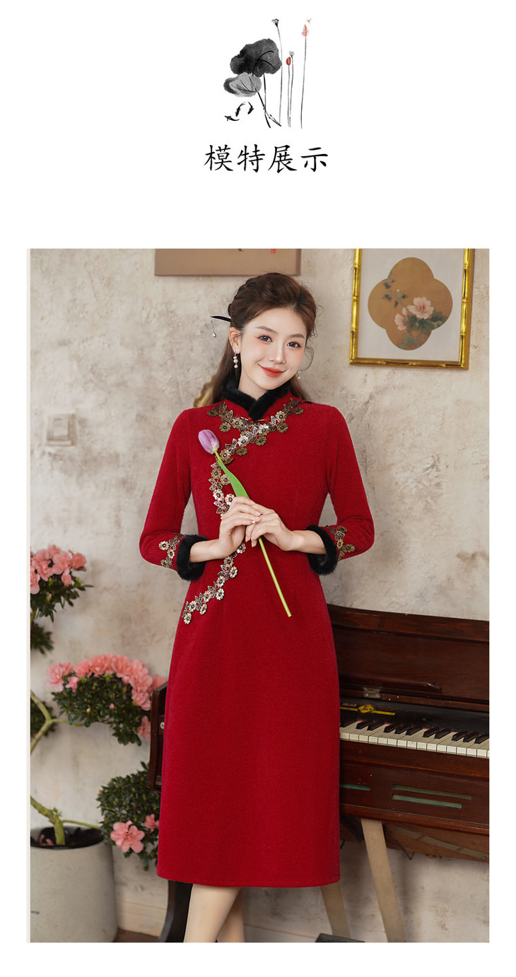 红色旗袍长袖加厚,新娘敬酒服改良连衣裙国风GSJ5542