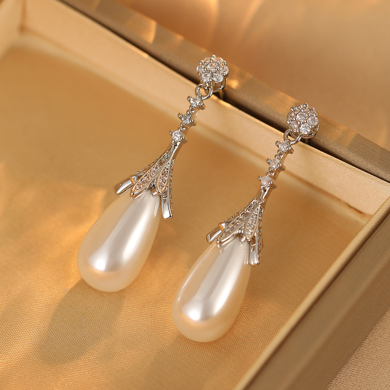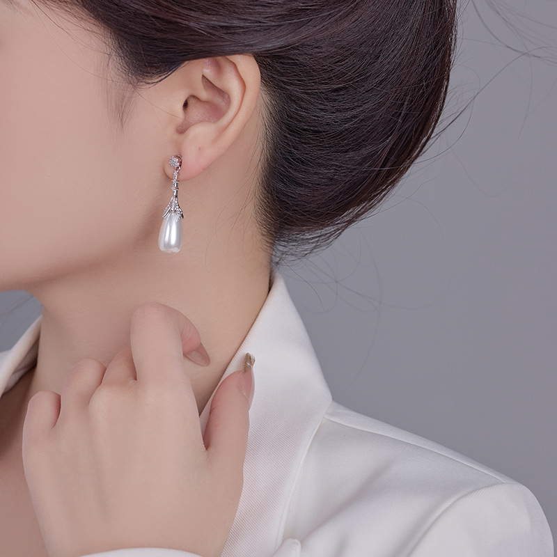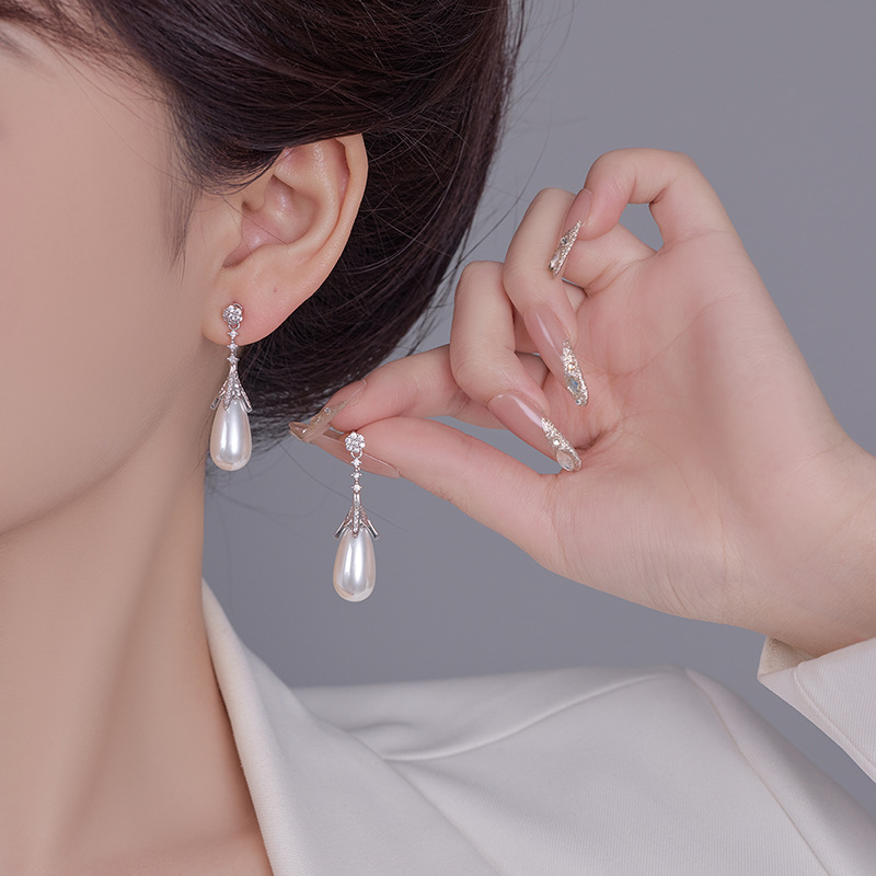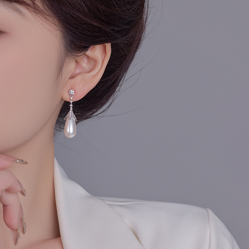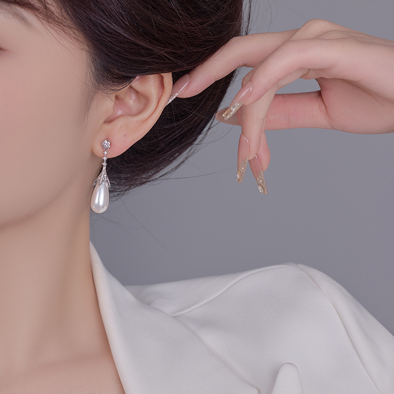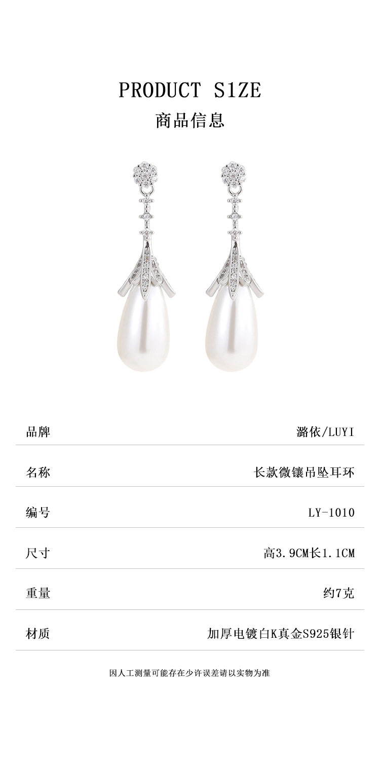 雀说长款设计水滴珍珠耳环女轻奢高级感耳钉S925银针时尚气质法式耳饰AL1010