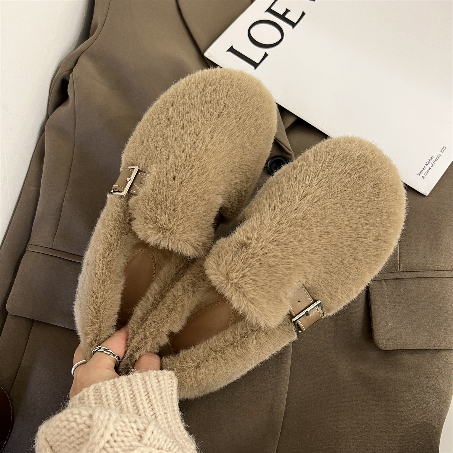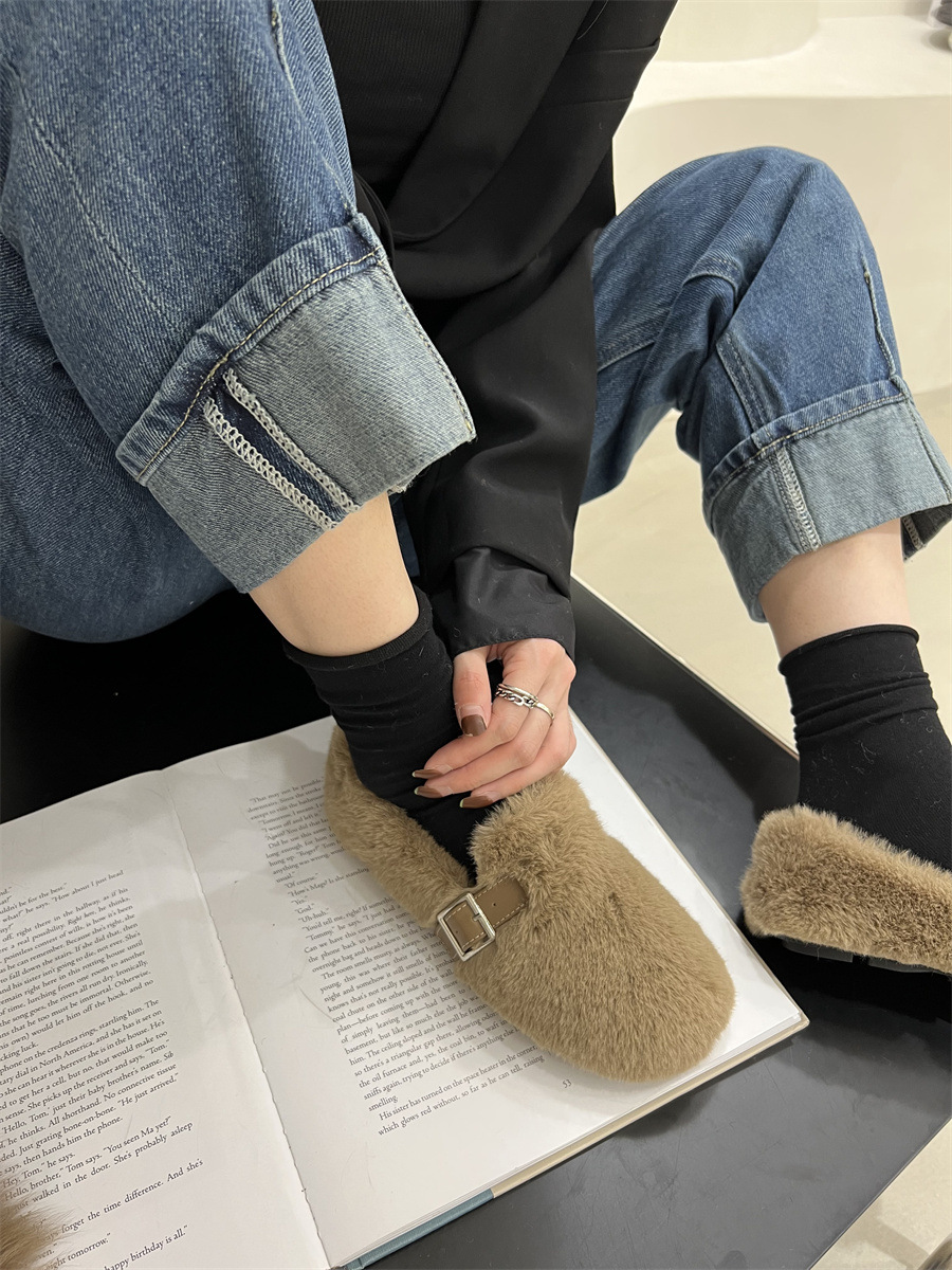 毛毛鞋一脚蹬豆豆鞋加绒保暖孕妇棉瓢鞋FF3816
