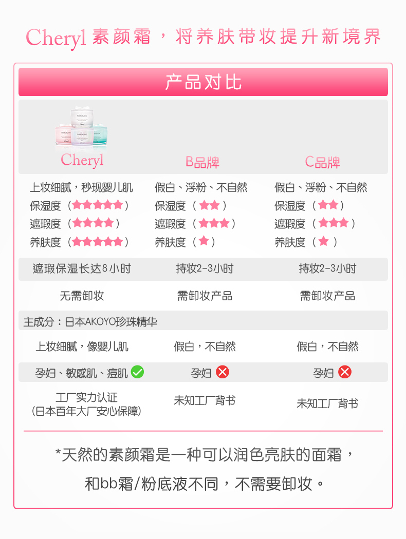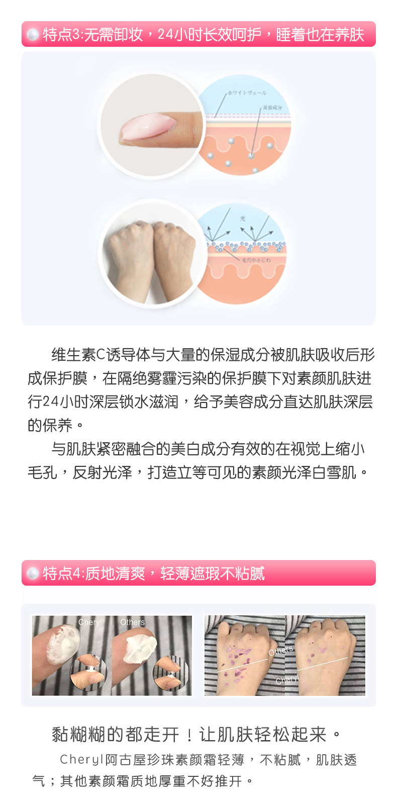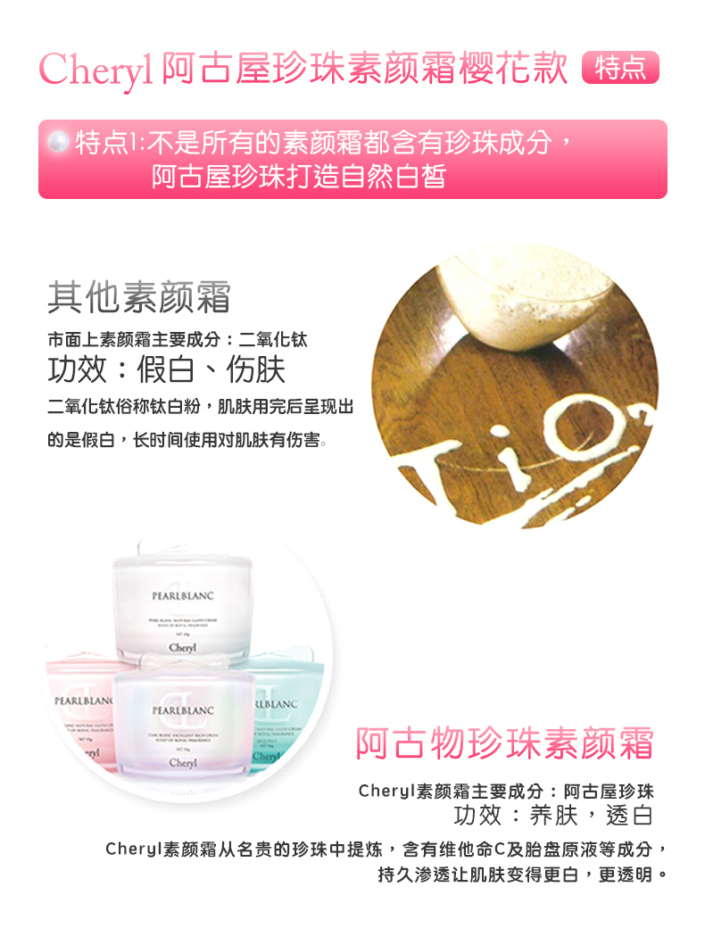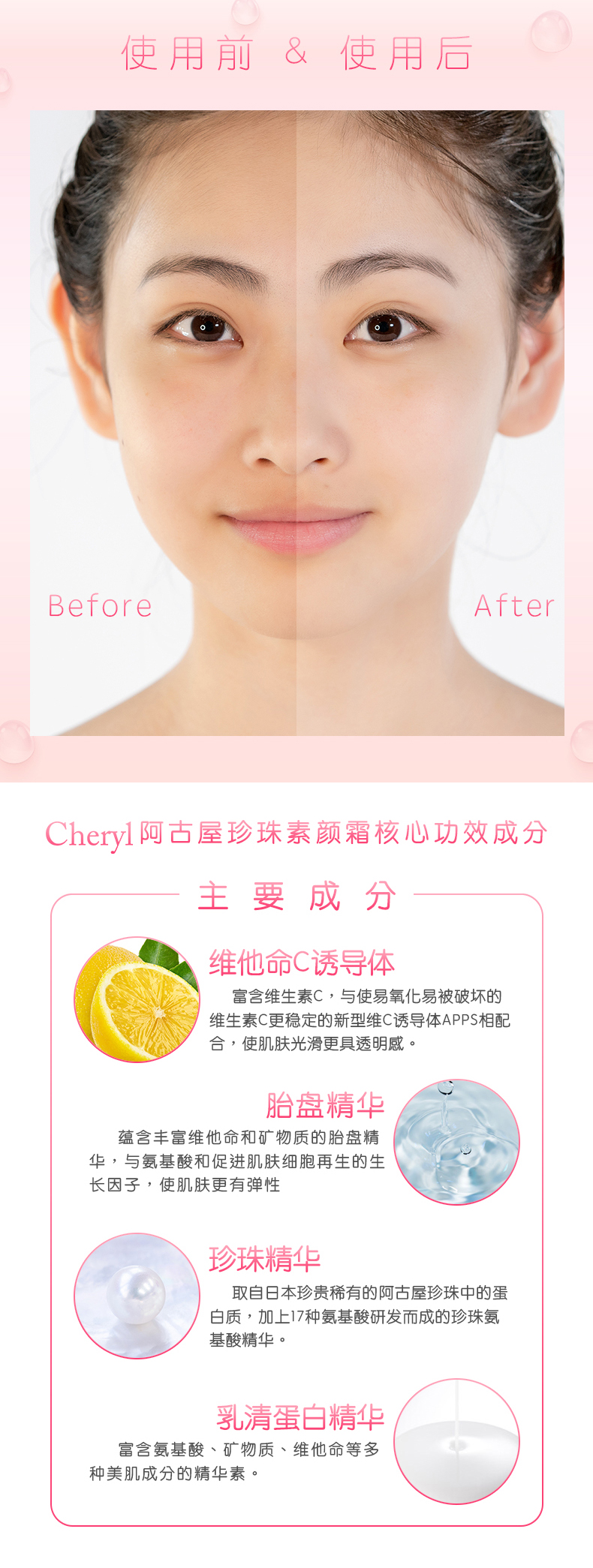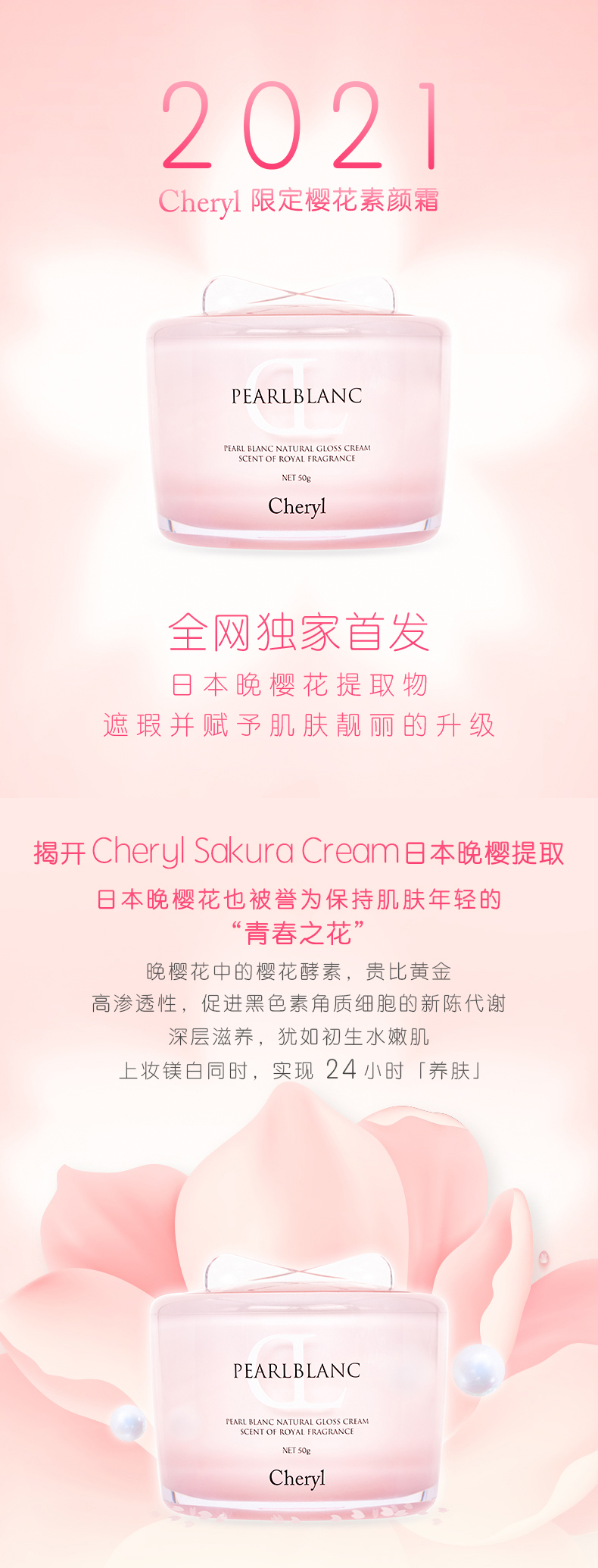 以下为Cheryl阿古屋珍珠素颜霜(樱花版)的详情展示:
