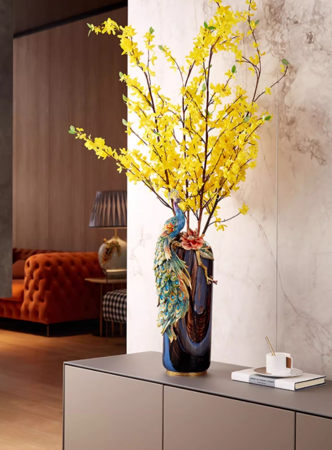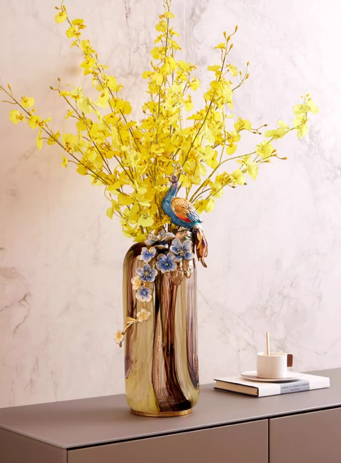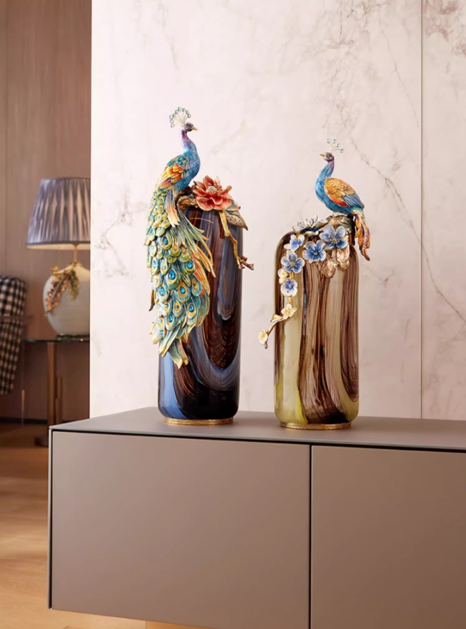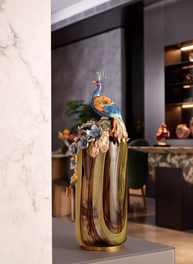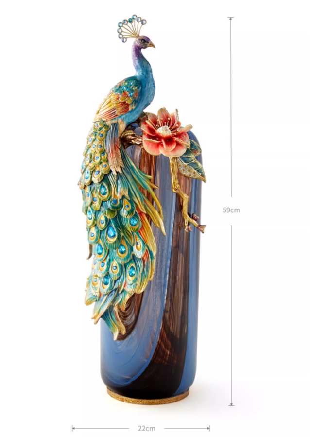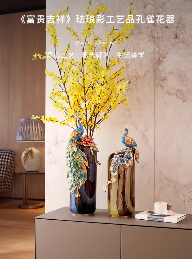 【彼达思】罗比罗丹孔雀富贵吉祥花瓶摆件珐琅彩工艺家居饰品乔迁礼物