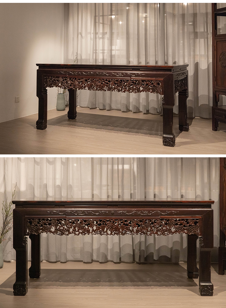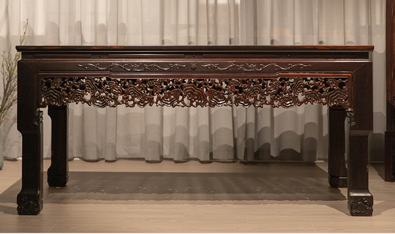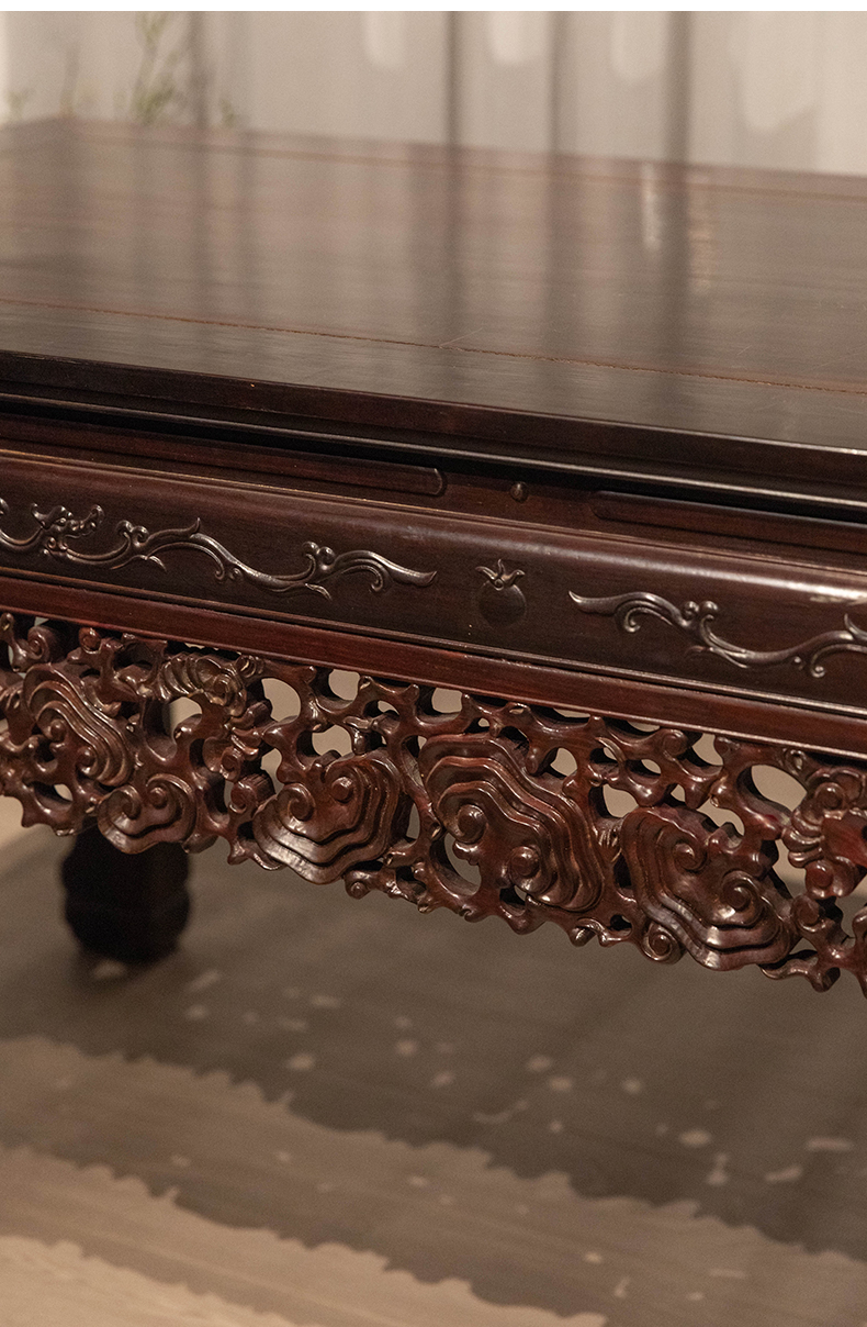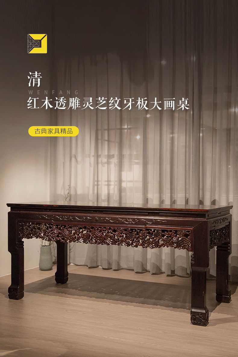 清代 红木透雕灵芝纹牙板大画桌
