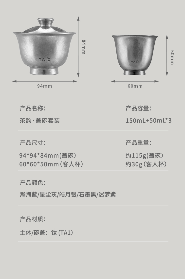 【TAIC 太可】茶韵茶具系列 纯钛盖碗茶杯主人杯高端功夫茶具套装