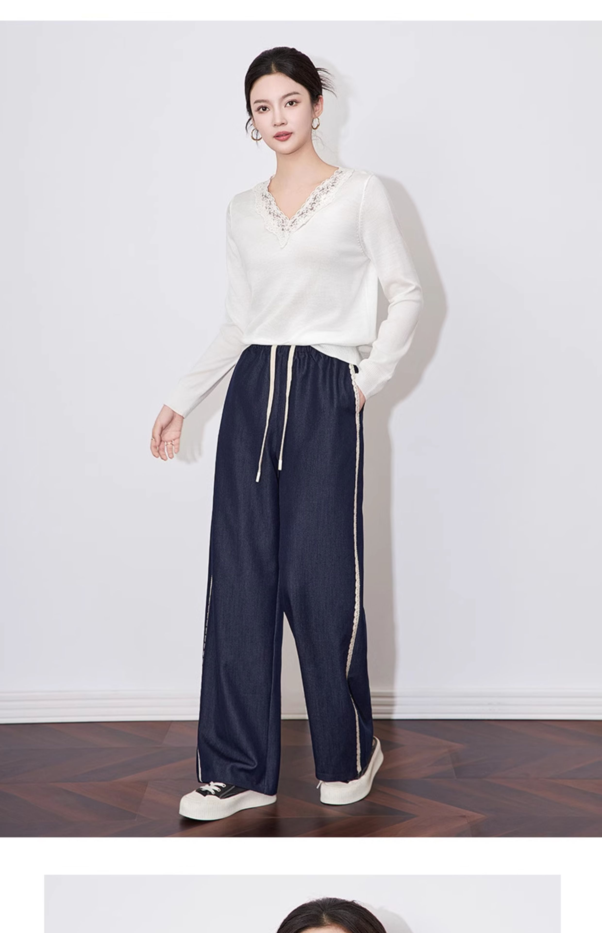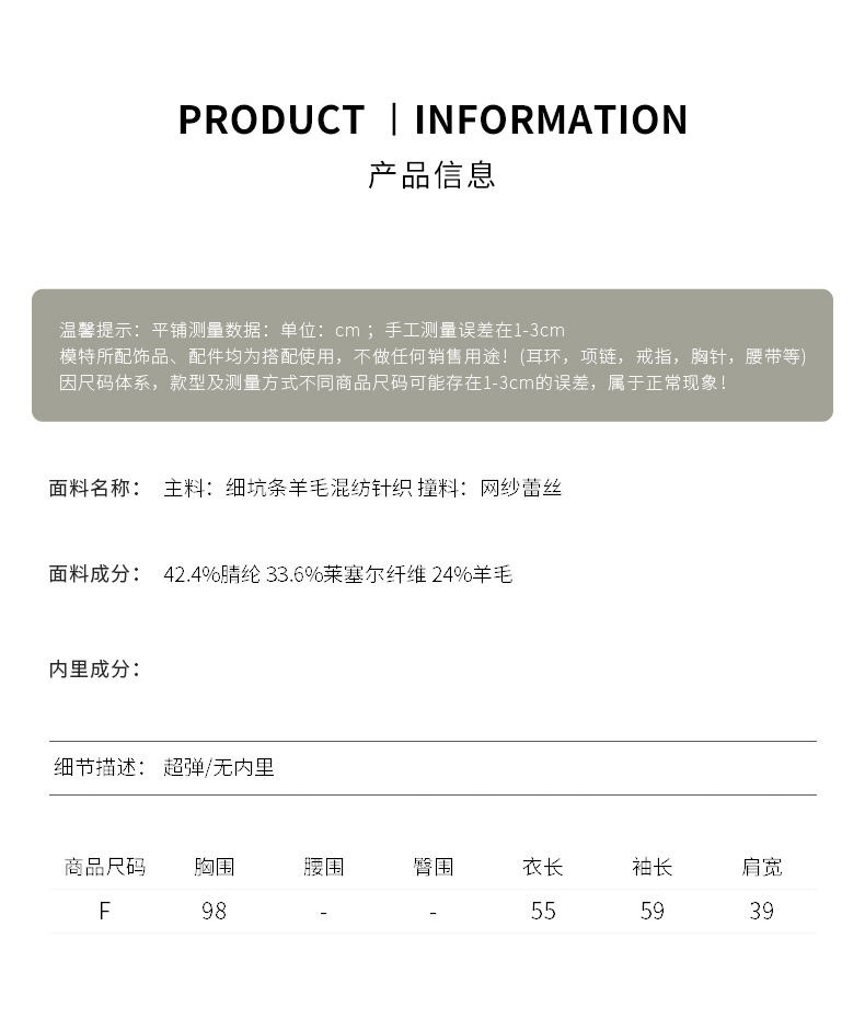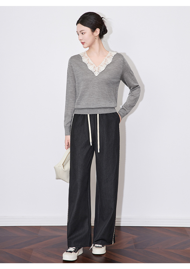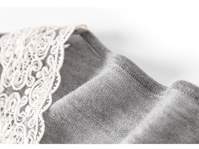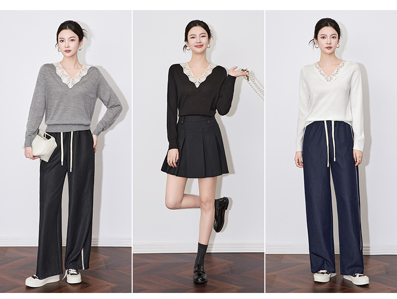 【高货wl】全新升级【铂金会员165/天猫219/差价54】(11430) 洛诗琳春秋法式高级感蕾丝花边拼接V领软糯羊毛针织上衣