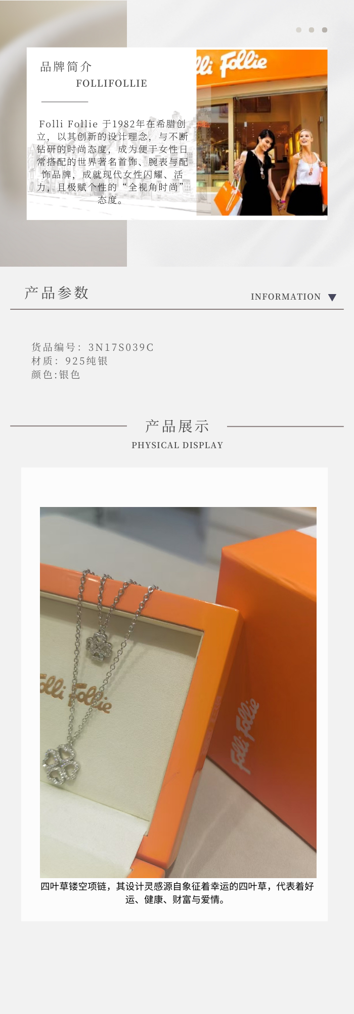 Folli Follie · 镂空四叶草项链•925纯银•双链条设计•浪漫与幸运元素