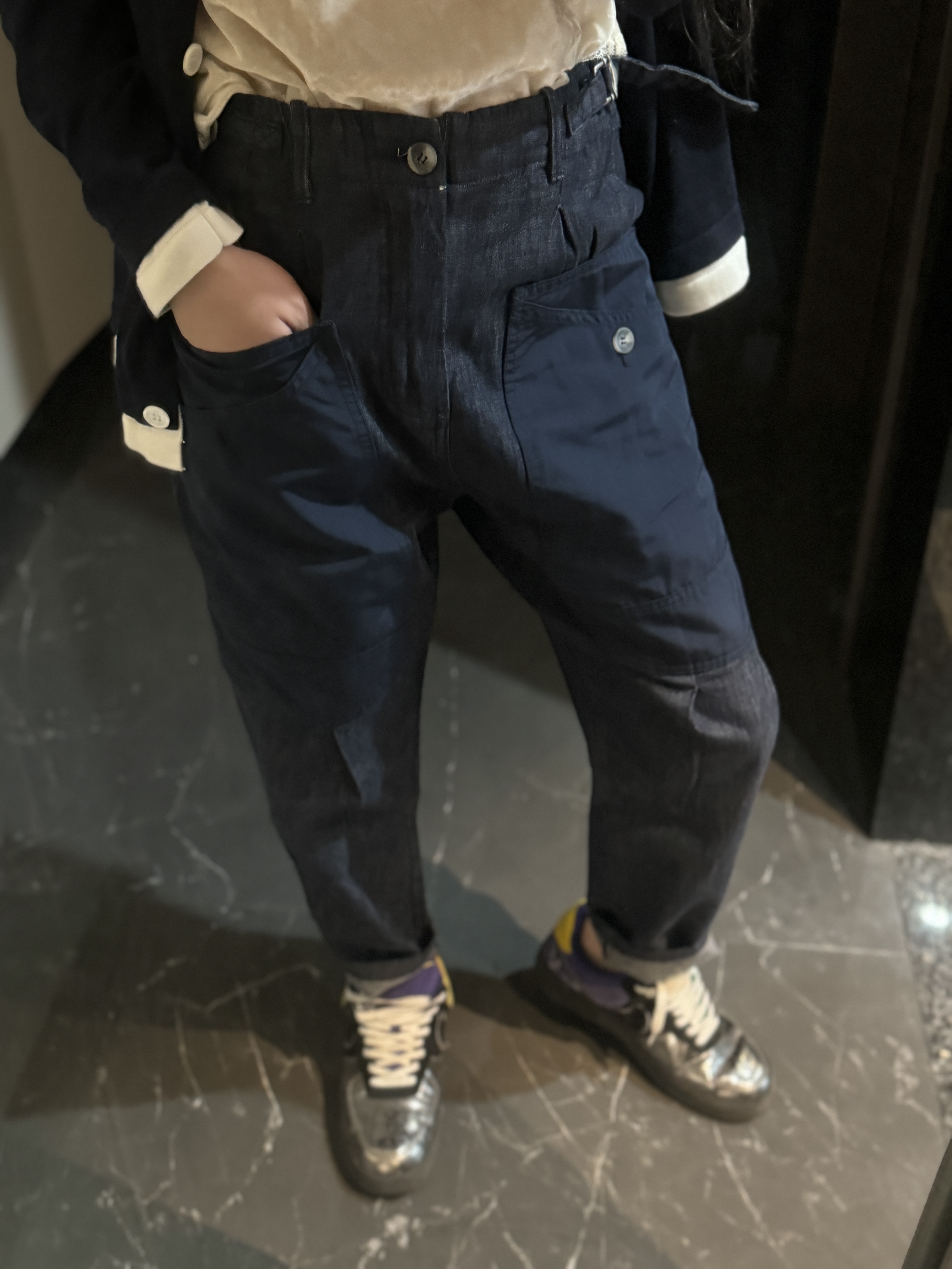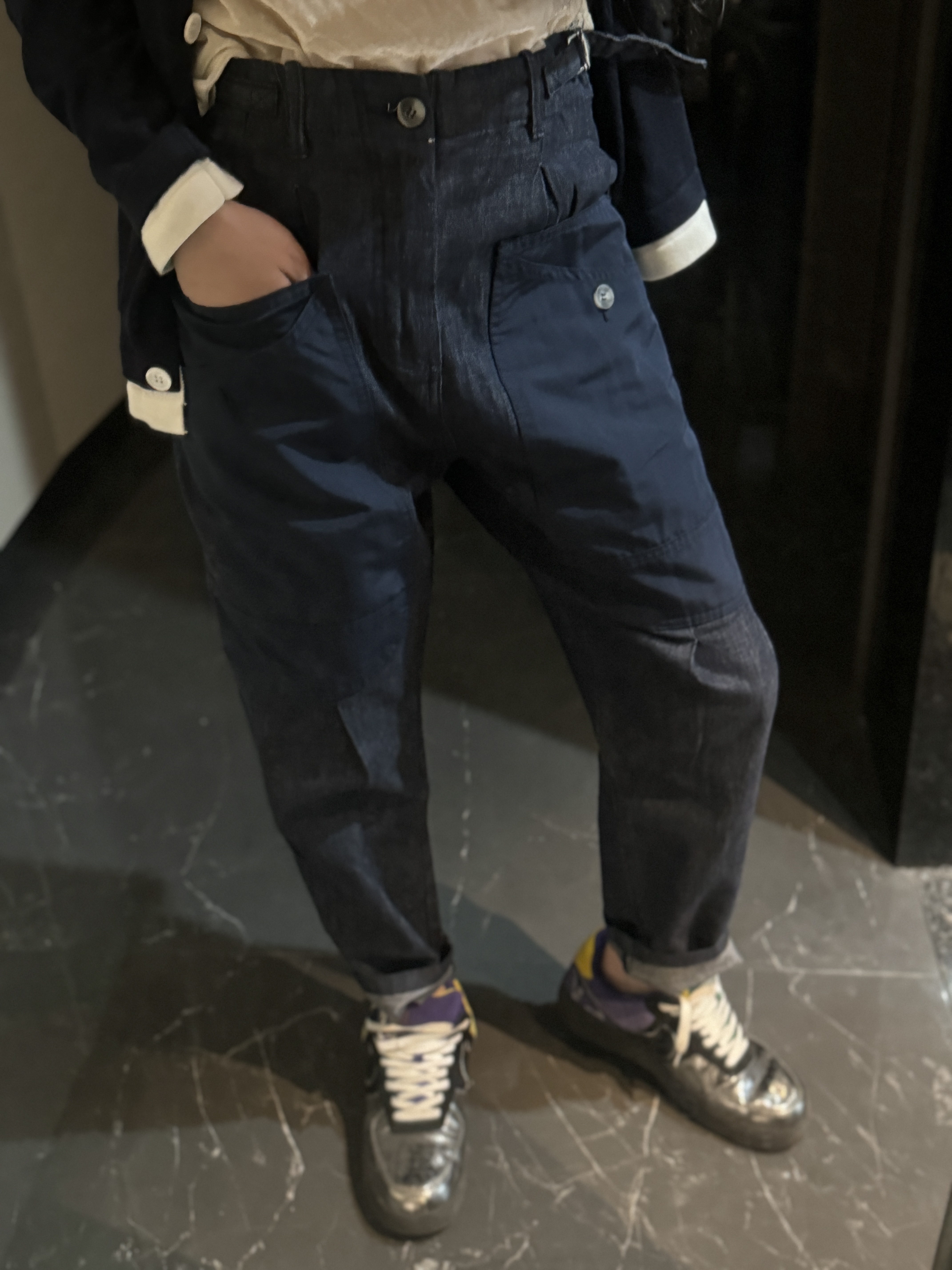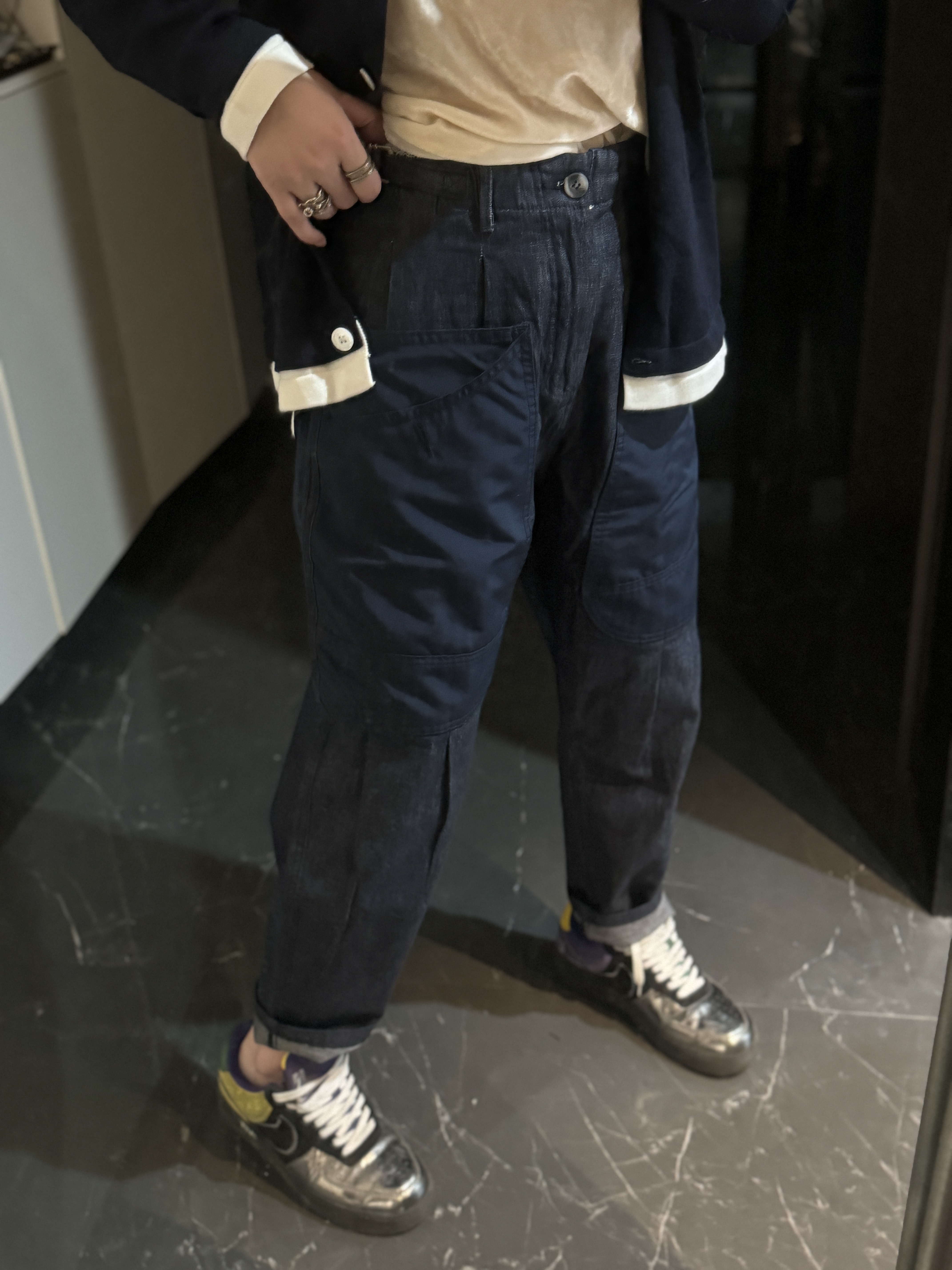 男女同款!【BL&ACK EY&ES 原创工装裤|硬核质感 颠覆日常】 🔥 原创设计加持,细节控的终极选择! 这款深蓝灰工装裤以1971年经典设计为灵感,裤身绣有「ORIG INAL DES IGN」标签,拒绝撞款,彰显独特个性。腰头可调节金属扣+YKK古铜拉链,兼顾实用与复古质感,每一步都是街头焦点! 双层口袋设计:超大容量+分层收纳,手机钥匙随手放,通勤出游超省心。 75%棉+24%亚麻+1%氨纶:透气耐磨,垂感一流,春夏秋三季穿出自在感。通过国家质检,亲肤无刺激,敏感肌也能安心穿。 吊牌价¥569,现在入手即享品质保障!洗涤标签清晰标注30℃机洗、免熨烫,好打理不娇气,懒人必备神裤! 蕾姐穿29非常宽松⚠️ 波哥穿34合适⚠️