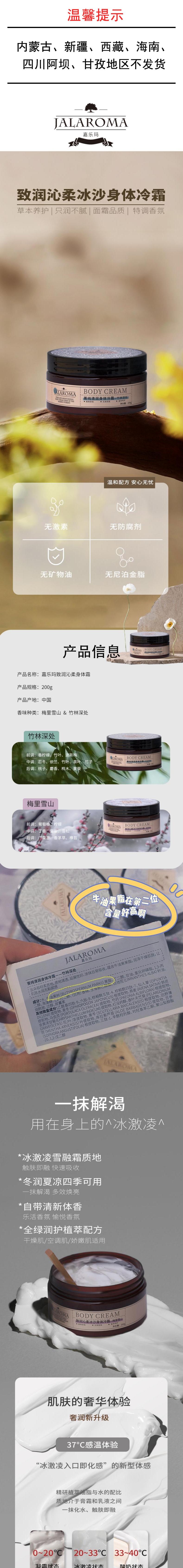 JALAROMA嘉乐玛 致润沁柔冰沙身体冷霜(梅里雪山)200g J035