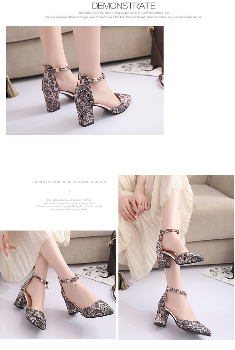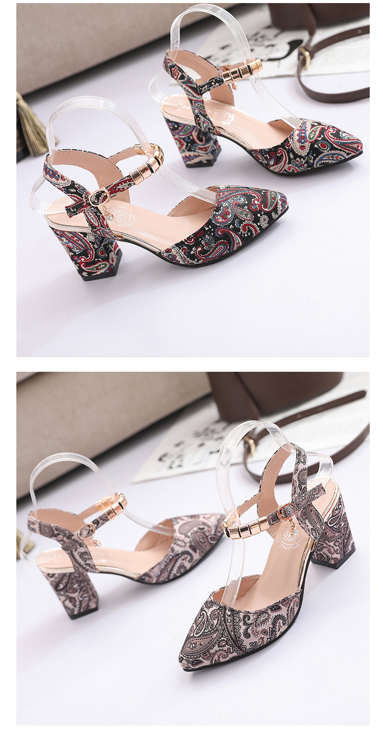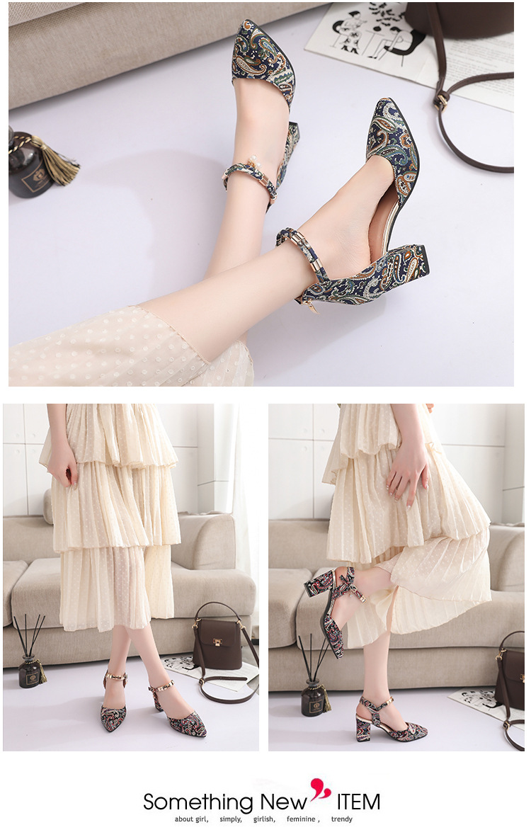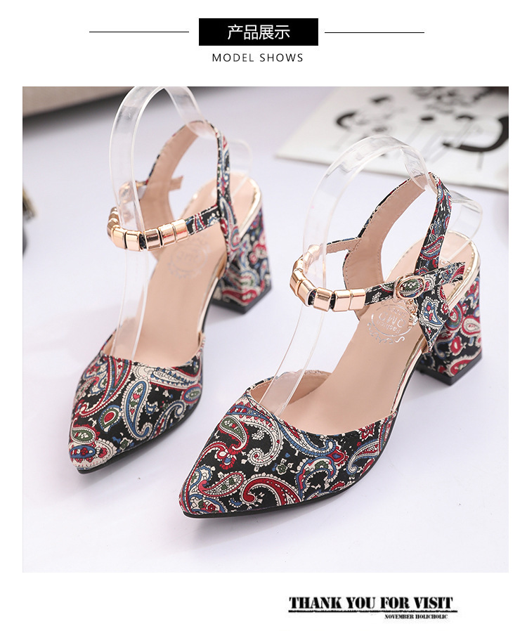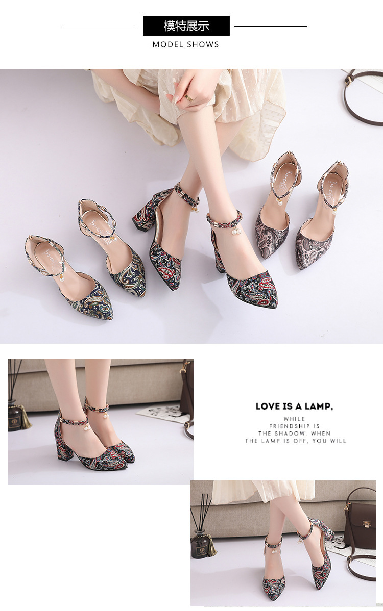 HY-701新款粗跟百搭浅口民族风一字扣女鞋