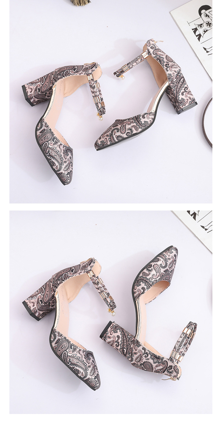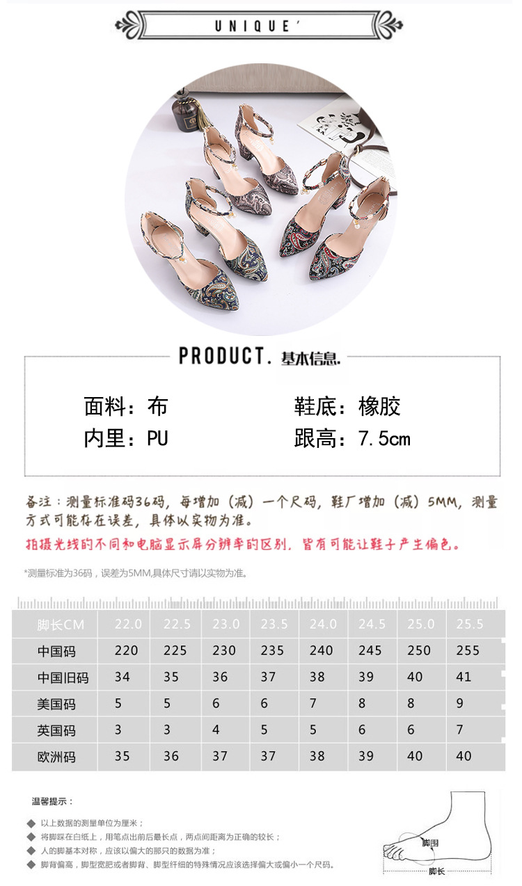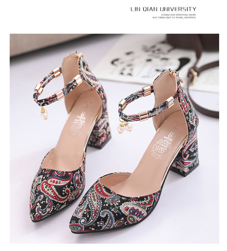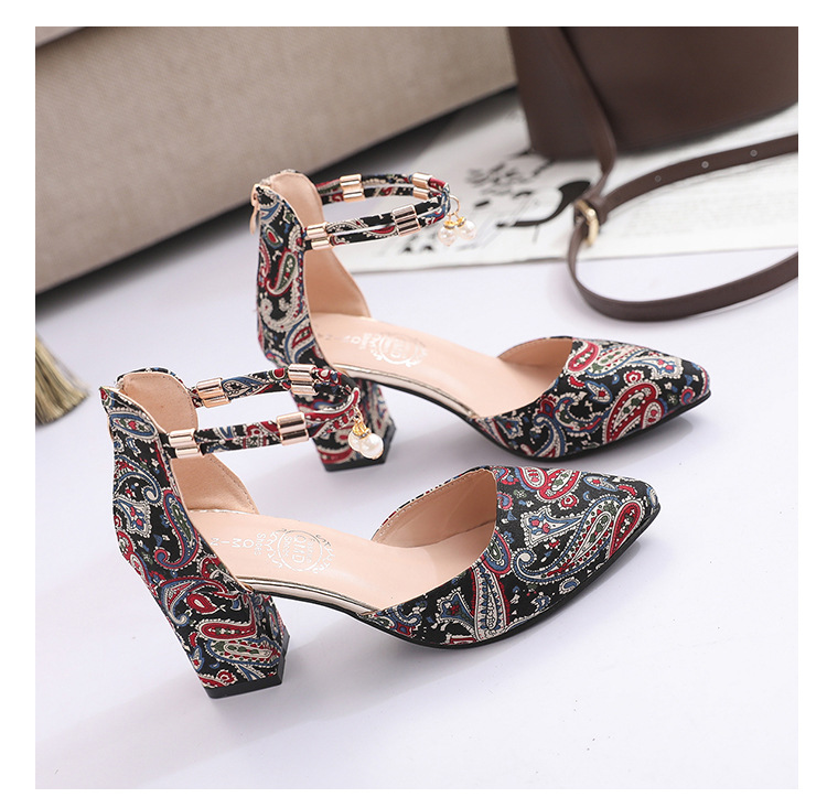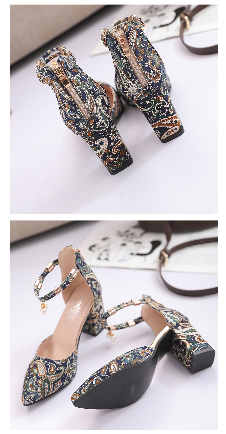 HY-701新款粗跟百搭浅口民族风一字扣女鞋