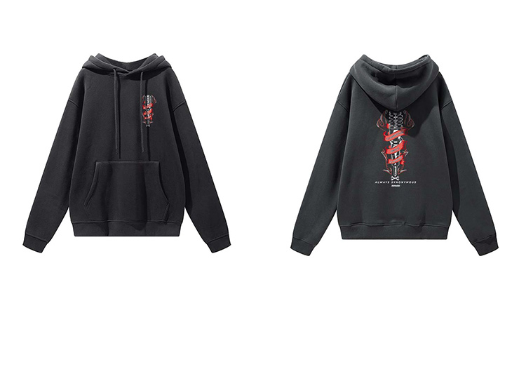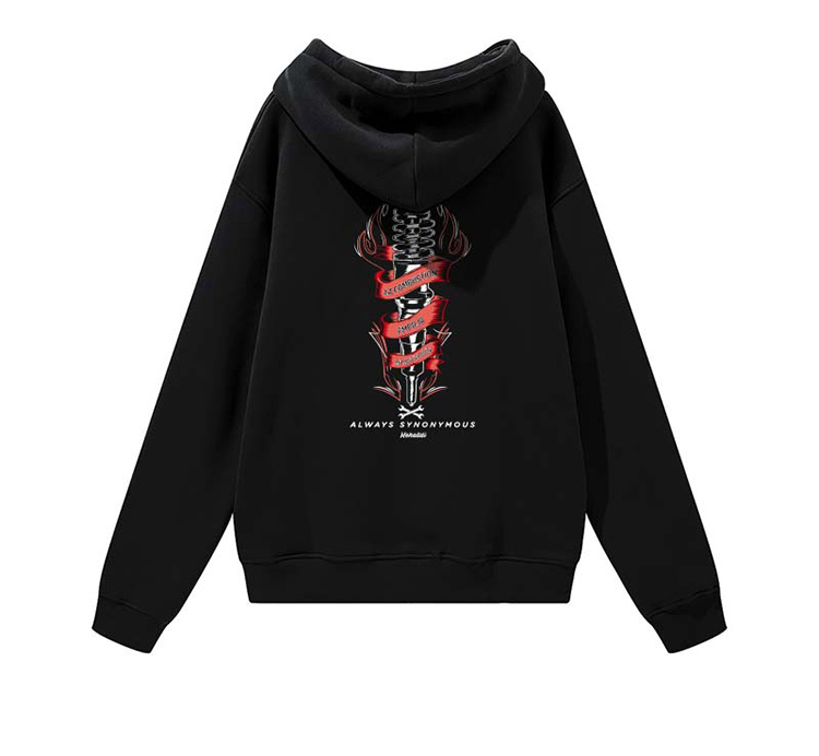 潮流机车风欧美复古车零件图案印花宽松抓绒卫衣带帽oversize套头 NMT-1773