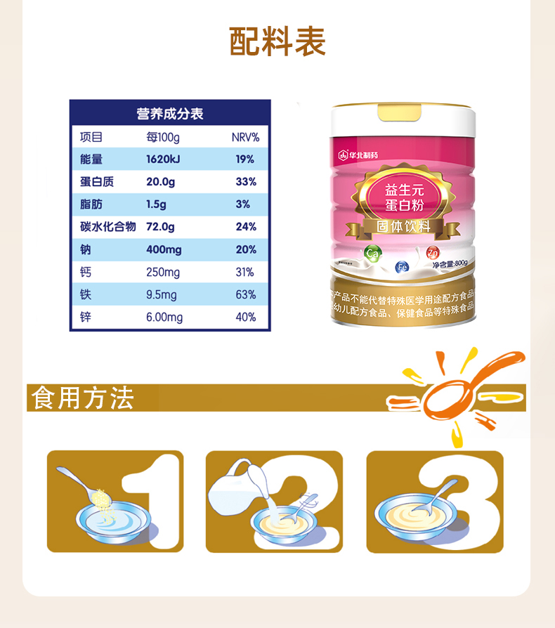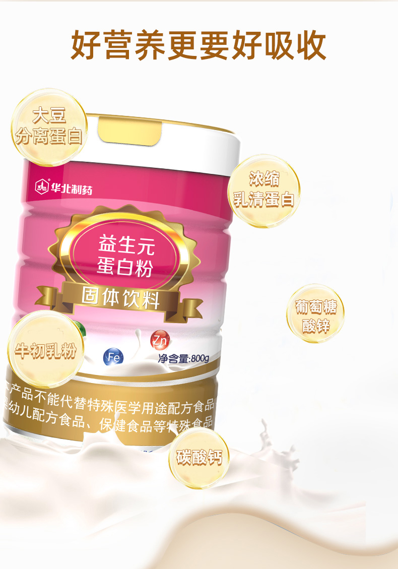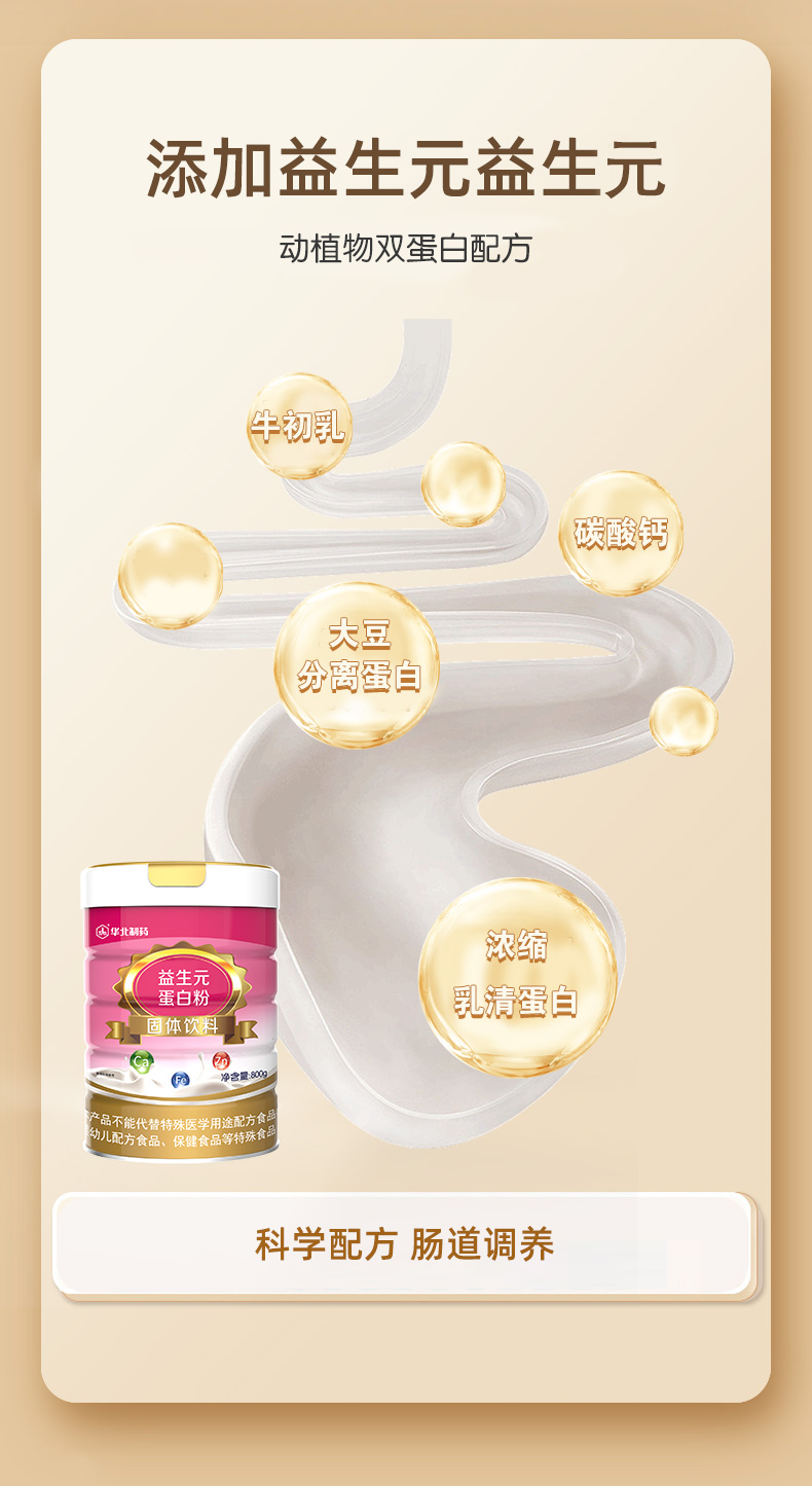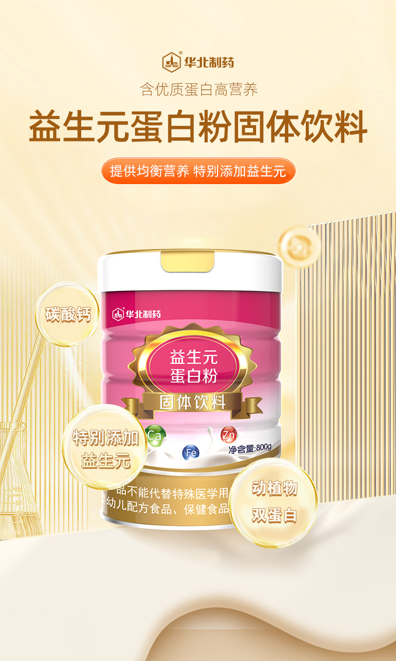 华北制药益生元蛋白粉 800g/桶 补充蛋白质及益生菌 非转基因大豆