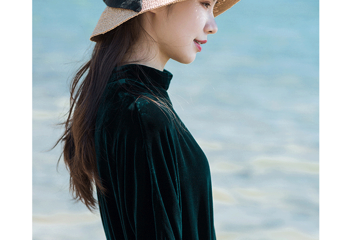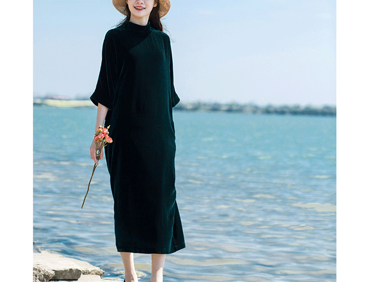 丁摩 进口金丝绒秋冬新款连衣裙真皮腰带优雅范茧型长裙晚礼袍子长裙19-165DB299240531