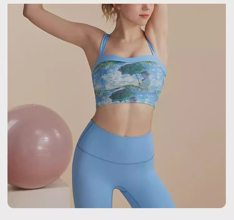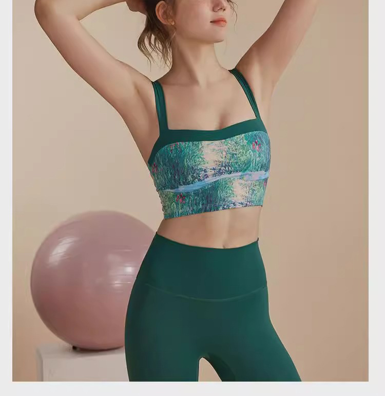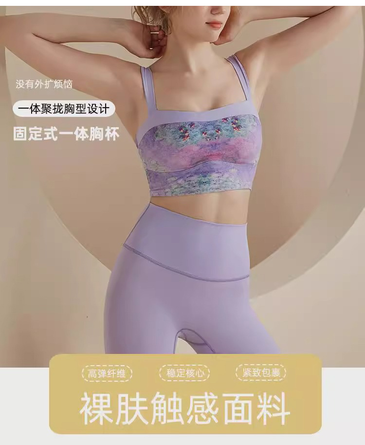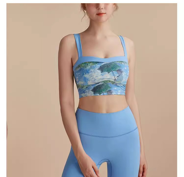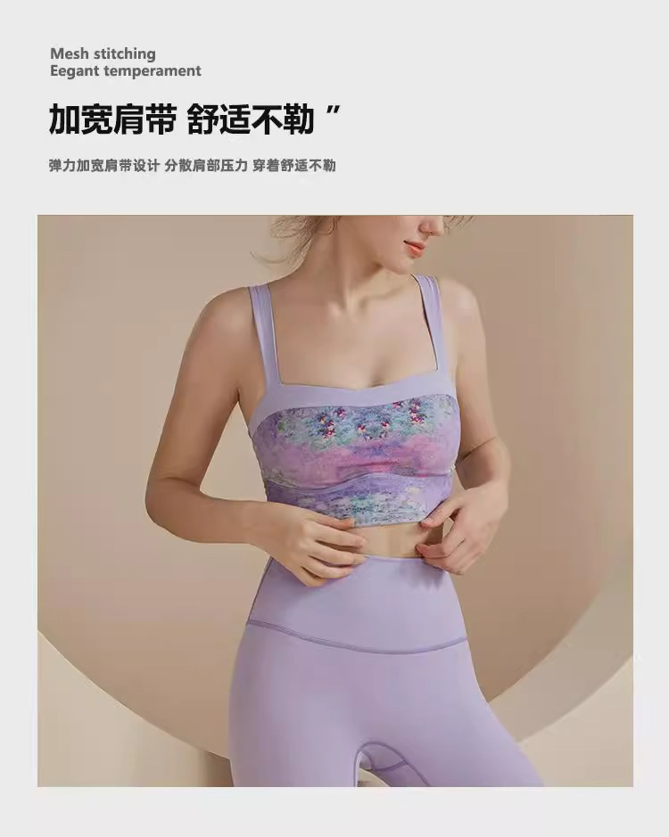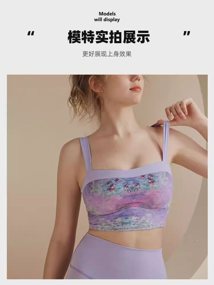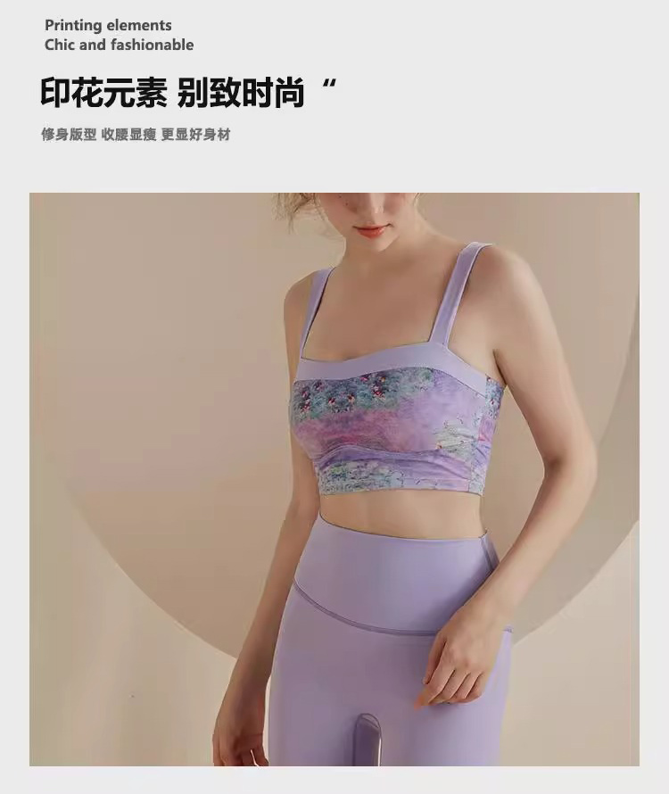 跃牌【洛水之神系列】油画瑜伽服背心美背一体式固定胸垫聚拢文胸726