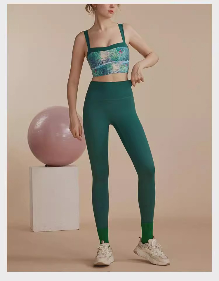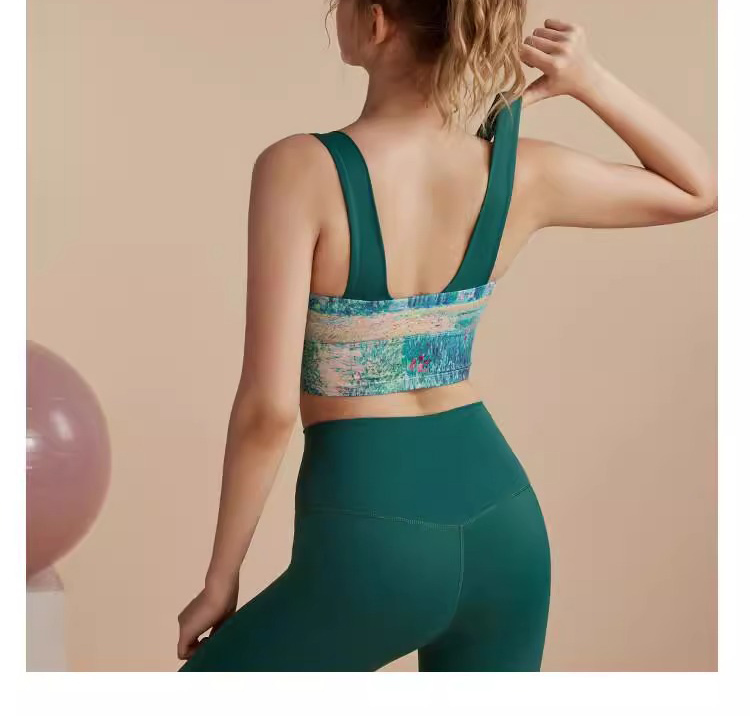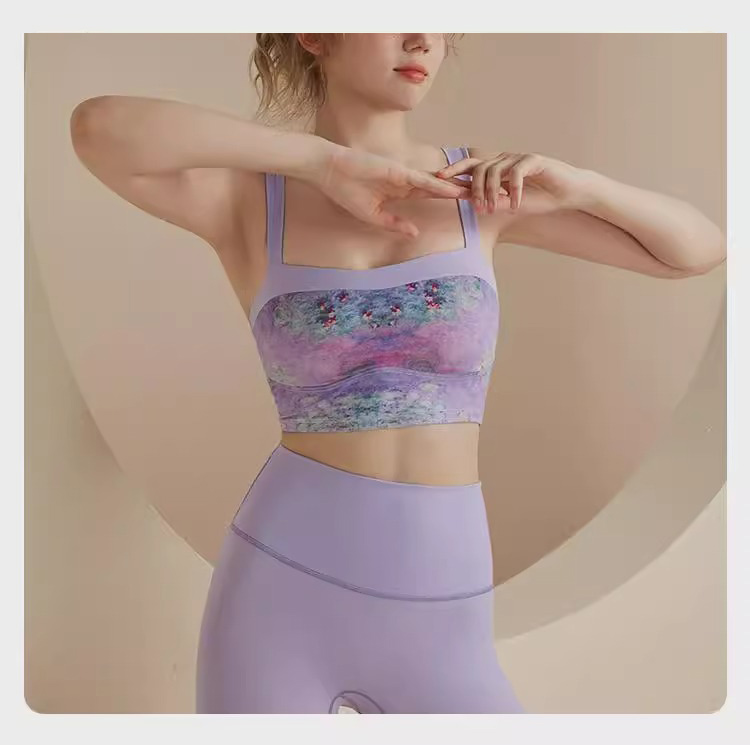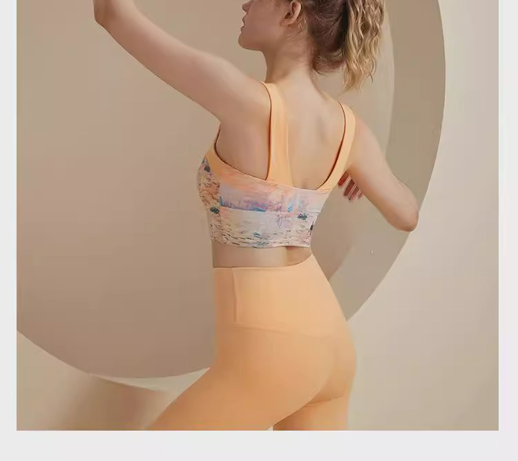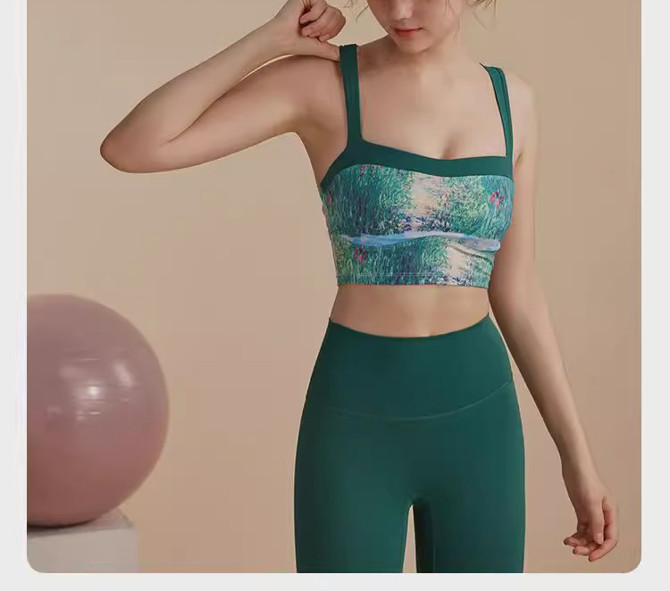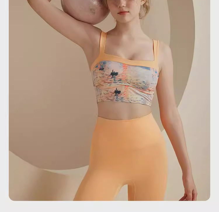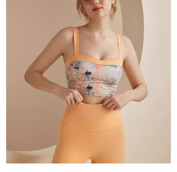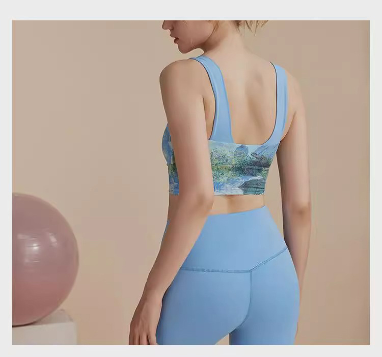 跃牌【洛水之神系列】油画瑜伽服背心美背一体式固定胸垫聚拢文胸726