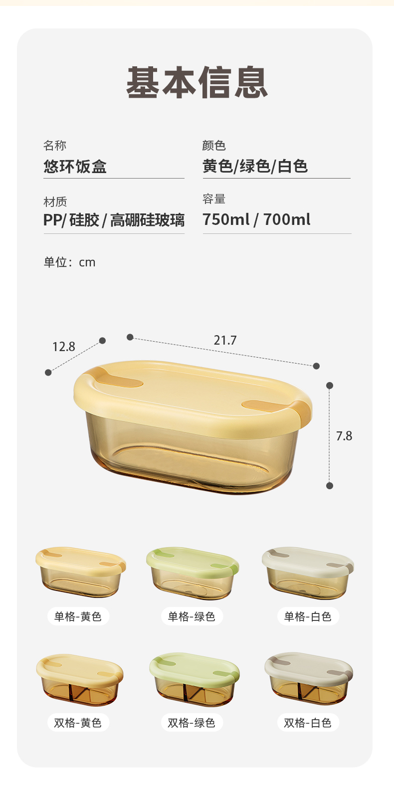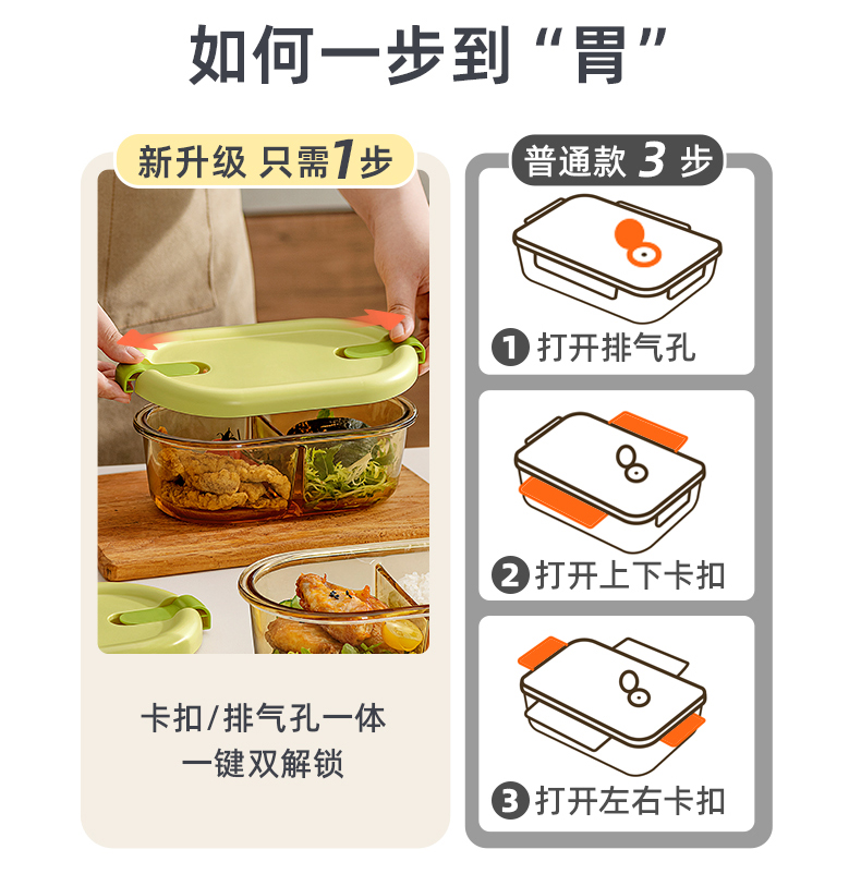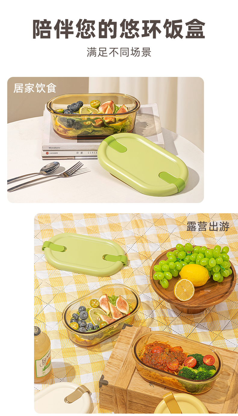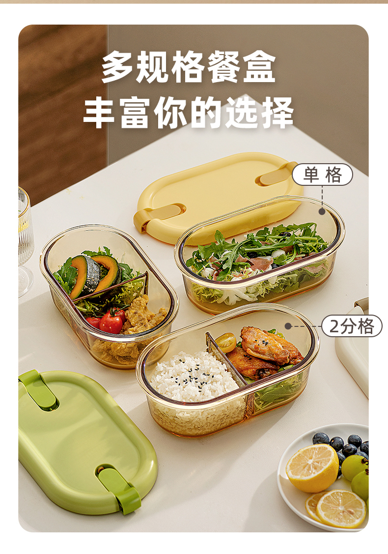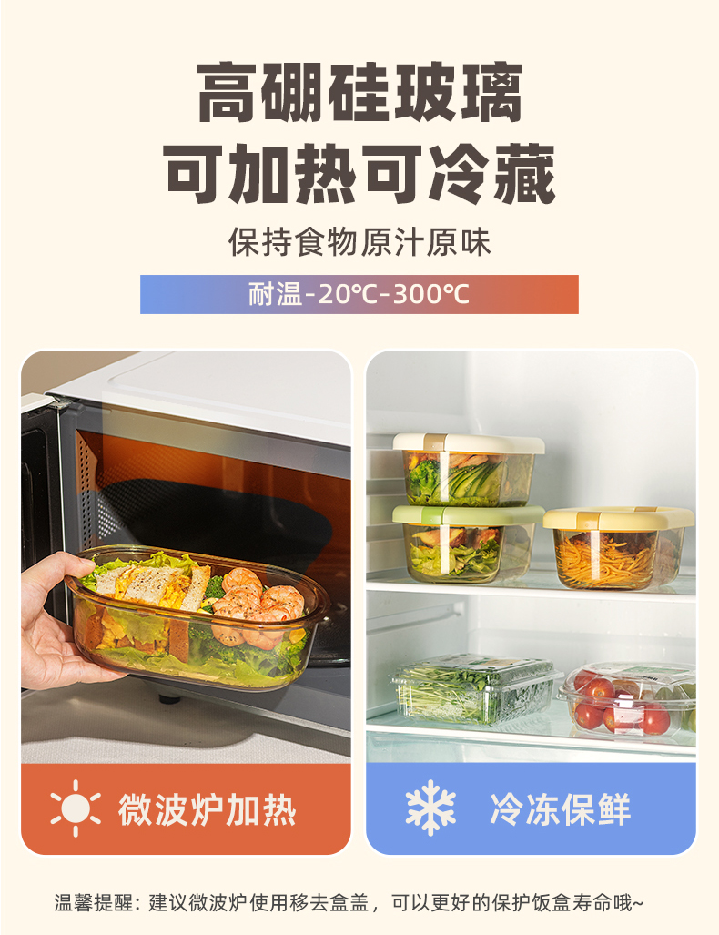 摩登主妇饭盒微波炉加热专用高硼硅玻璃食品级冰箱带饭密封保鲜盒
